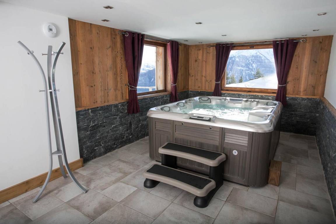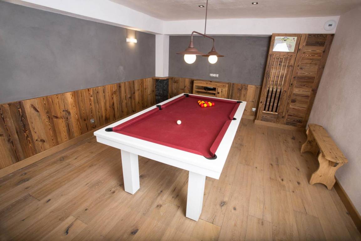 Individuelles Chalet. Im Erdgeschoss: 2 Schlafzimmer mit eigenem Bad. (1 Schlafzimmer mit 4 Einzelbetten 90x190 cm / 1 Schlafzimmer mit 1 Doppelbett 160x190 cm). Wäschekammer. Bike- und Skiraum mit Schuhtrockner und Handtuchtrockner. Im ersten Stock: Wohnzimmer - Lounge - Küche mit Zugang zu einer großen Terrasse. 3 Schlafzimmer mit eigenem Duschbad (1 Schlafzimmer mit 1 Doppelbett 160x190 cm / 1 Schlafzimmer mit 2 Einzelbetten 90x190 cm / 1 Schlafzimmer mit 2 Einzelbetten 90x190 cm). Im zweiten Stock: Mezzanine mit Spielplatz. 2 Schlafzimmer, darunter eine Suite mit eigenem Bad (1 Schlafzimmer mit 2 Einzelbetten 90x190 cm / 1 Schlafzimmer mit 1 Doppelbett 160x190 cm). Fernseher in jedem Schlafzimmer. SPA mit Hamam, Whirlpool und Dusche. Billiard Raum. Privater Parkplatz.