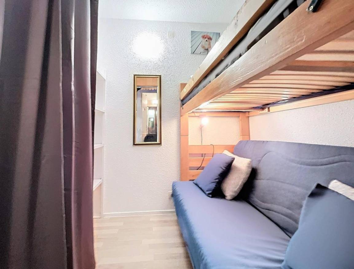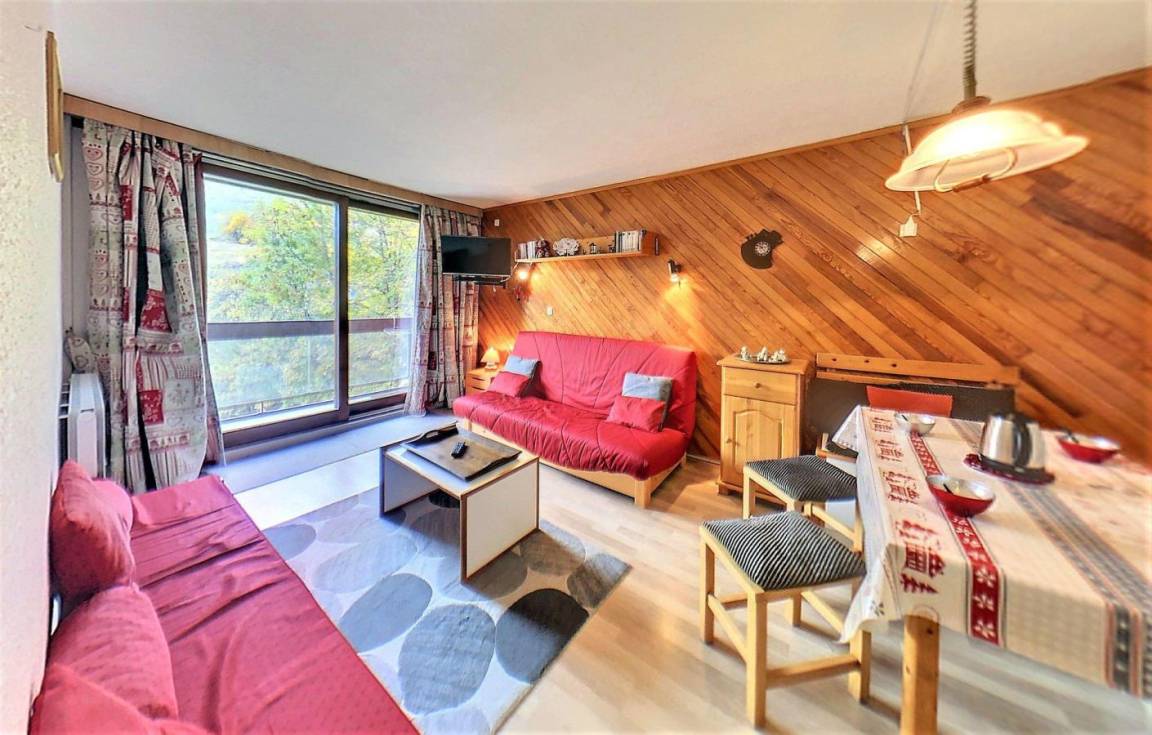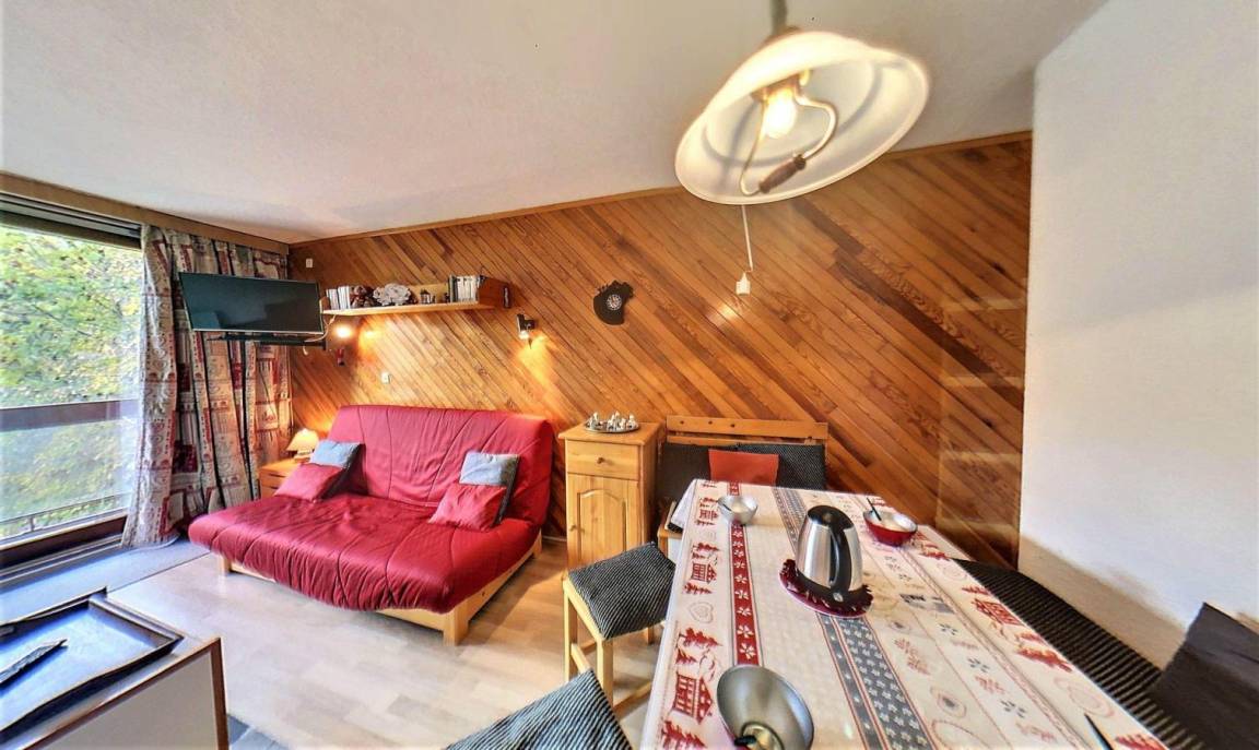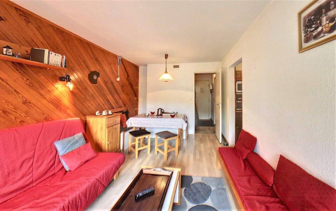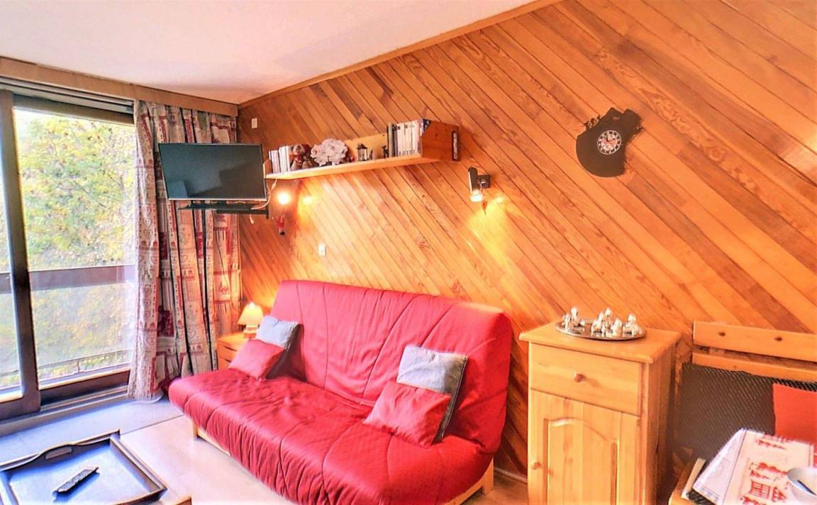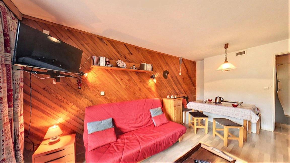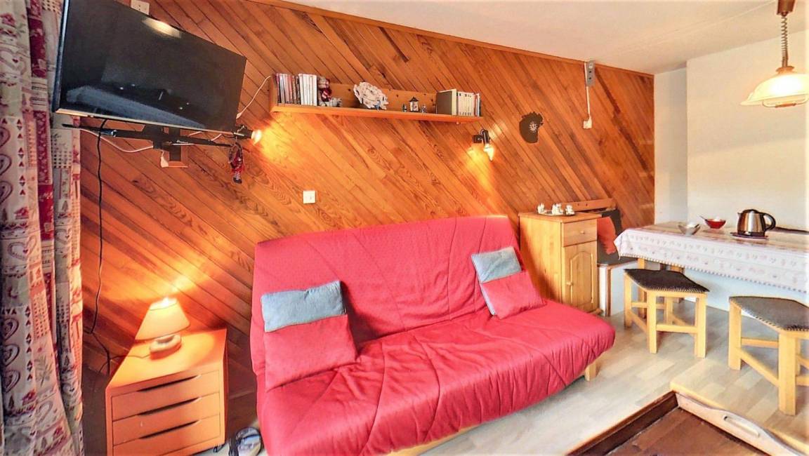 Fläche von ungefähr 28 m². 3te Etage. Orientierung : Süd. Blick skipisten. Wohnzimmer mit Klappschlafcouch (130*190), TV. offener Schlafbereich mit Klappschlafcouch (130), Stockbett. Kochnische mit Kaffeemaschine (Senseo), Mikrowellenherd, kleiner Backofen, 2 elektronische Herdplatten, Kühlschrank. Badezimmer mit Badewanne. separates WC. Balkon. 2 (doubles). Die oberen Betten sind nicht für Kinder unter 6 Jahren geeignet.
