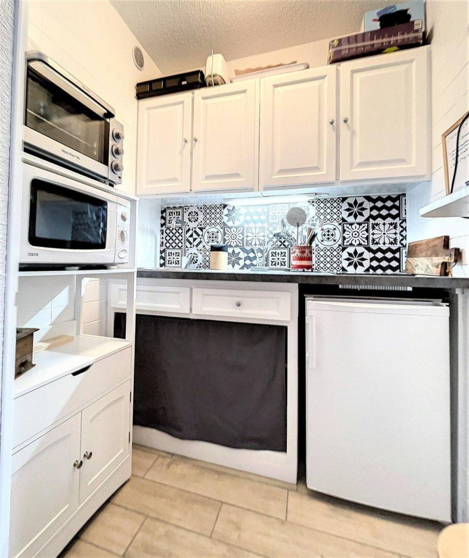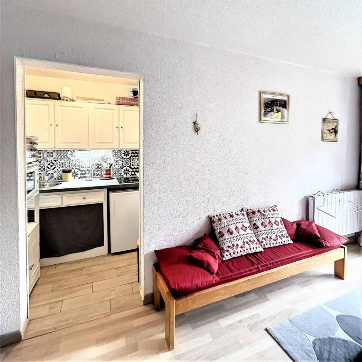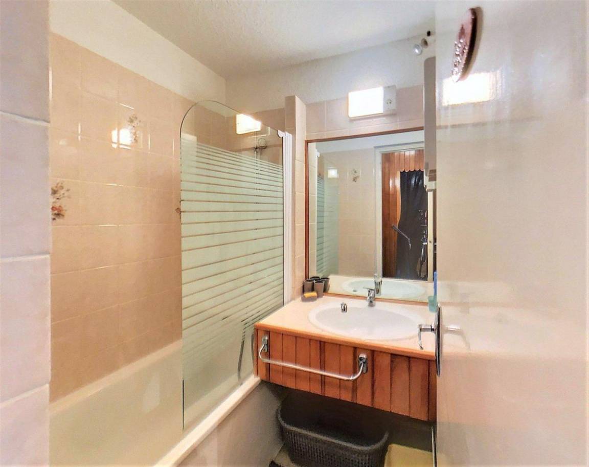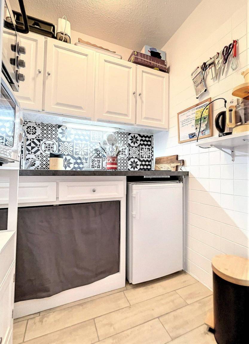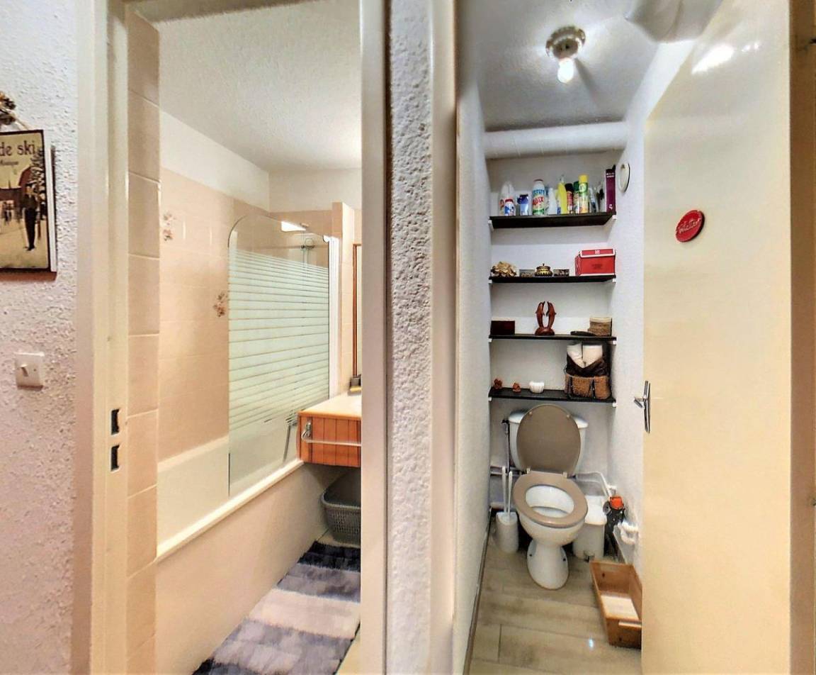 Fläche von ungefähr 28 m². 3te Etage. Orientierung : Süd. Blick skipisten. Wohnzimmer mit Klappschlafcouch (130*190), TV. offener Schlafbereich mit Klappschlafcouch (130), Stockbett. Kochnische mit Kaffeemaschine (Senseo), Mikrowellenherd, kleiner Backofen, 2 elektronische Herdplatten, Kühlschrank. Badezimmer mit Badewanne. separates WC. Balkon. 2 (doubles). Die oberen Betten sind nicht für Kinder unter 6 Jahren geeignet.