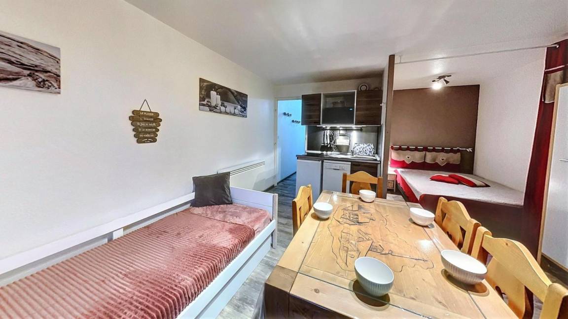 Die Residenz Zodiaque Vostok befindet sich im Herzen des Ferienortes Le Corbier. Sie besteht aus 17 Etagen mit Aufzügen. Sie ist ideal gelegen, nur 150 m vom Dorfzentrum und den Geschäften entfernt. Fläche von ungefähr 31 m². 9te Etage. Orientierung : Süd. Blick skipisten. Wohnzimmer mit BZ-Sofas (130*190), Einzelbett (90*190). Alkoven mit Doppelbett (140*190). Kochnische mit Fonduegerät, Raclettegerät, Wasserkocher, Kaffeemaschine (à filtre et senseo), kleiner Backofen mit Mikrowellenfunktion, Toaster, , Geschirrspülmaschine, 2 Induktionsherdplatten, Kühlschrank. Waschräume mit italienische Duschkabine, Haartrockner. separates WC. Balkon. Waschmaschine.