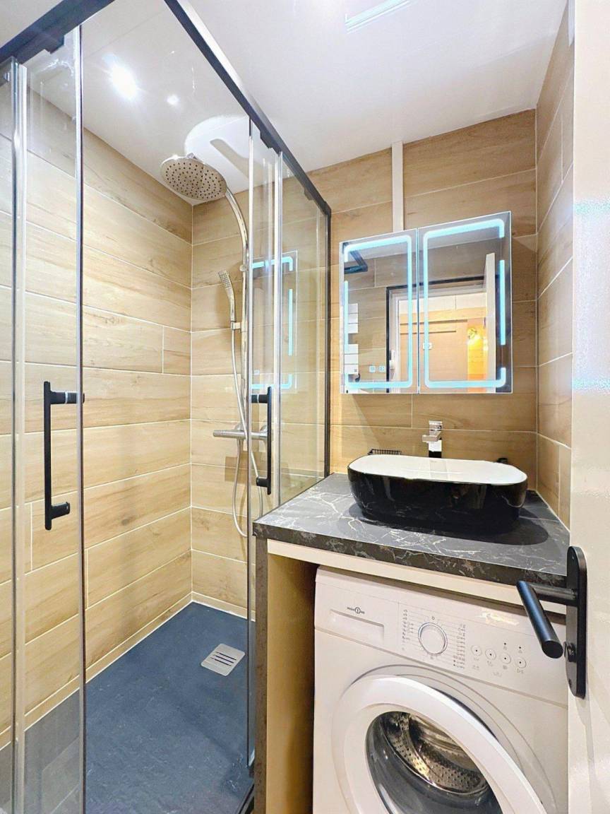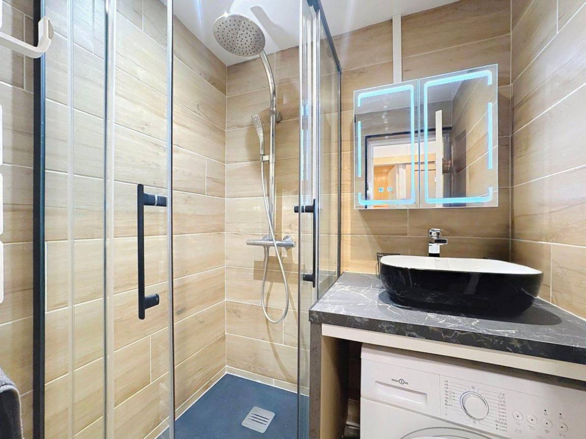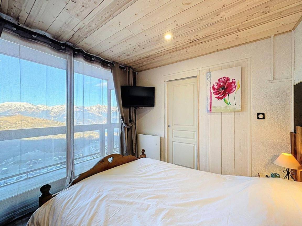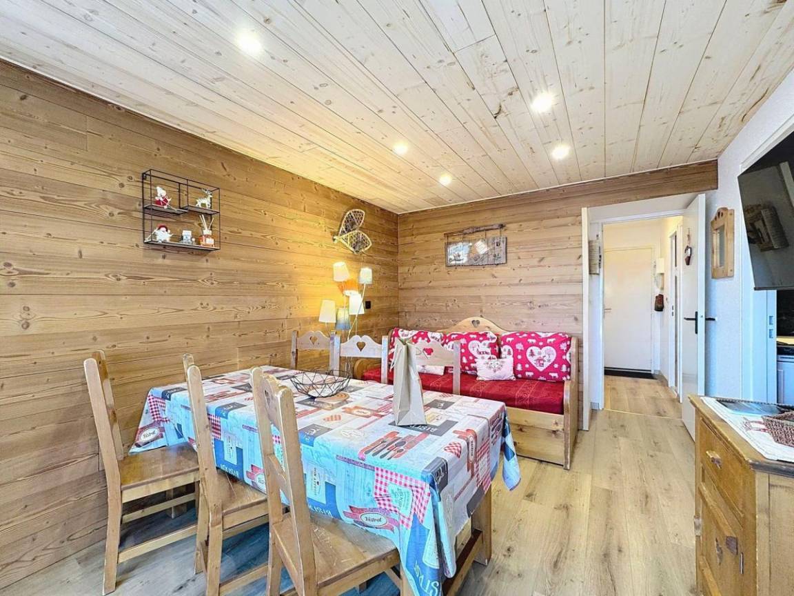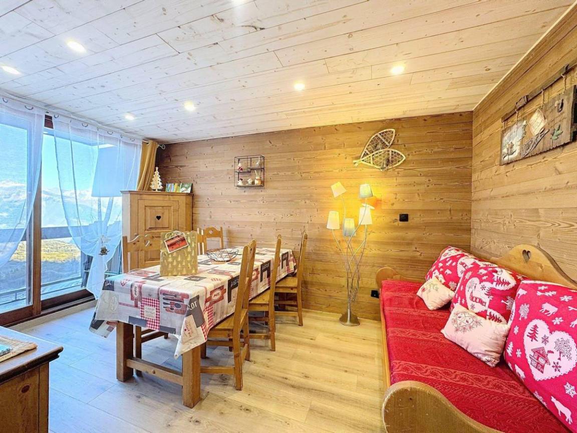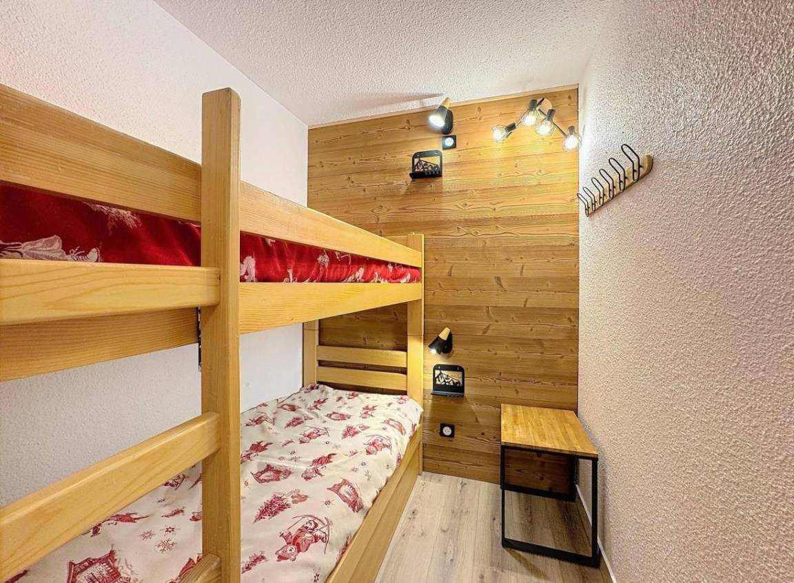 Fläche von ungefähr 37 m². 7te Etage. Orientierung : Nord. Wohnzimmer mit Ausziehschlafcouch für 2 Personen. Schlafzimmer mit Doppelbett (140). offener Schlafbereich mit 2 Stockbetten (90), Ausziehbett (90). Kochnische mit Fonduegerät, Raclettegerät, Wasserkocher, Kaffeemaschine (filtres et Senseo), kleiner Backofen mit Mikrowellenfunktion, Toaster, Geschirrspülmaschine, 4 Glaskeramikkochfelder, Kühlschrank. Waschräume mit Handtuchtrockner. separates WC. Balkon. Waschmaschine. Die oberen Betten sind nicht für Kinder unter 6 Jahren geeignet.