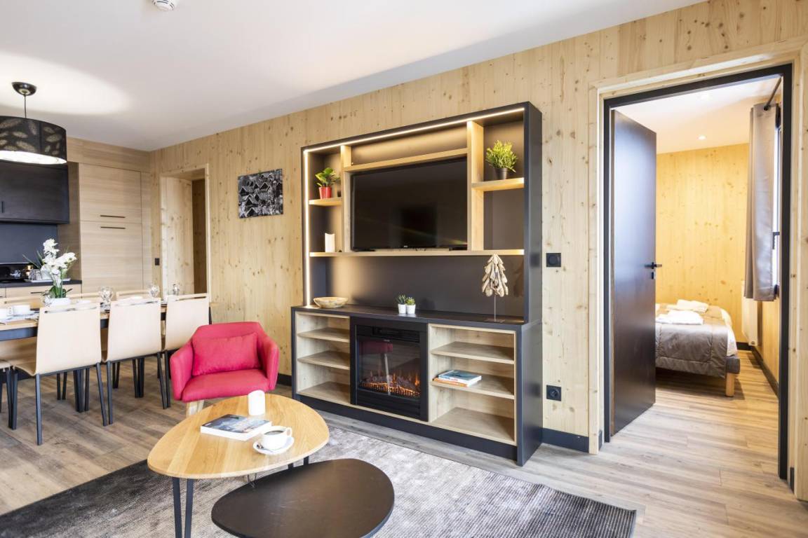 Die Residenz Club MMV L'Etoile des Sybelles 4* ist ideal im Ferienort Le Corbier gelegen. Sie befindet sich im Herzen des Dorfes, in der Nähe von Geschäften und Unterhaltungsmöglichkeiten. Die 99 voll ausgestatteten Apartments mit Balkon sind geräumig und warm und strahlen Bergatmosphäre aus. Ihre ökologische Bauweise aus modularen Holzblöcken macht sie zur ersten Ferienresidenz dieser Art. Profitieren Sie von einem Zugang pro Tag und Person zum Entspannungsbereich mit beheiztem Innen-/Außenpool, Sauna und Hammam. Fläche von ungefähr 74 m². Wohnzimmer mit Klappschlafcouch. 3 Schlafzimmer mit Doppelbett oder 2 Einzelbetten. Schlafzimmer mit 2 zwei Einzelbetten. Küche mit Wasserkocher, Kaffeemaschine, kleiner Backofen mit Mikrowellenfunktion, Geschirrspülmaschine, 2 Glaskeramikkochfelder, Kühlschrank. Badezimmer mit Haartrockner, Handtuchtrockner, WC. Waschräume. Waschräume mit WC. Balkon ODER Terrasse. Skiaufbewahrungsfach.
