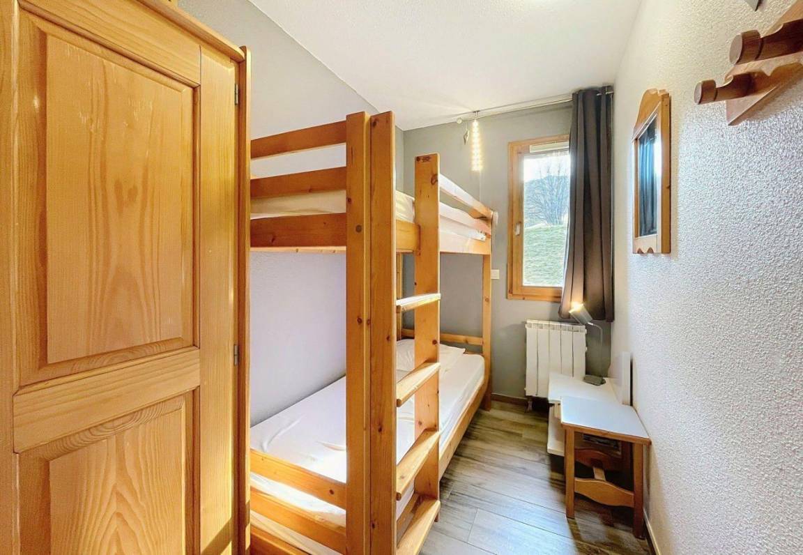 Die Residenz Les Pistes mit Aufzug befindet sich im Ferienort Corbier in einer ruhigen Gegend und ist in mehrere Gebäude unterteilt. Wanderwege befinden sich in unmittelbarer Nähe. Die Geschäfte und Dienstleistungen des Ferienorts sind ebenfalls nur wenige Dutzend Meter entfernt. Fläche von ungefähr 40 m². 3te Etage. Orientierung : Süd. Wohnzimmer mit Klappschlafcouch (140*190), TV. Schlafzimmer mit Doppelbett (140*190), TV. offener Schlafbereich mit 2 Stockbetten (80*190). Küche mit Fonduegerät, Raclettegerät, Wasserkocher, Kaffeemaschine (filtre+nespresso), Backofen, Toaster, , Geschirrspülmaschine, Mikrowellenherd, 2 Glaskeramikkochfelder, Kühl-Gefrier-Kombination. Waschräume. WC. Balkon. Die oberen Betten sind nicht für Kinder unter 6 Jahren geeignet.