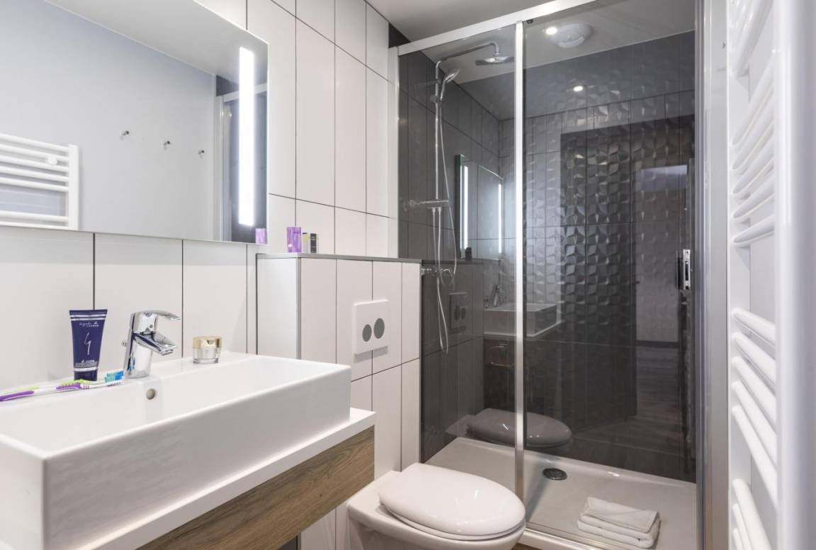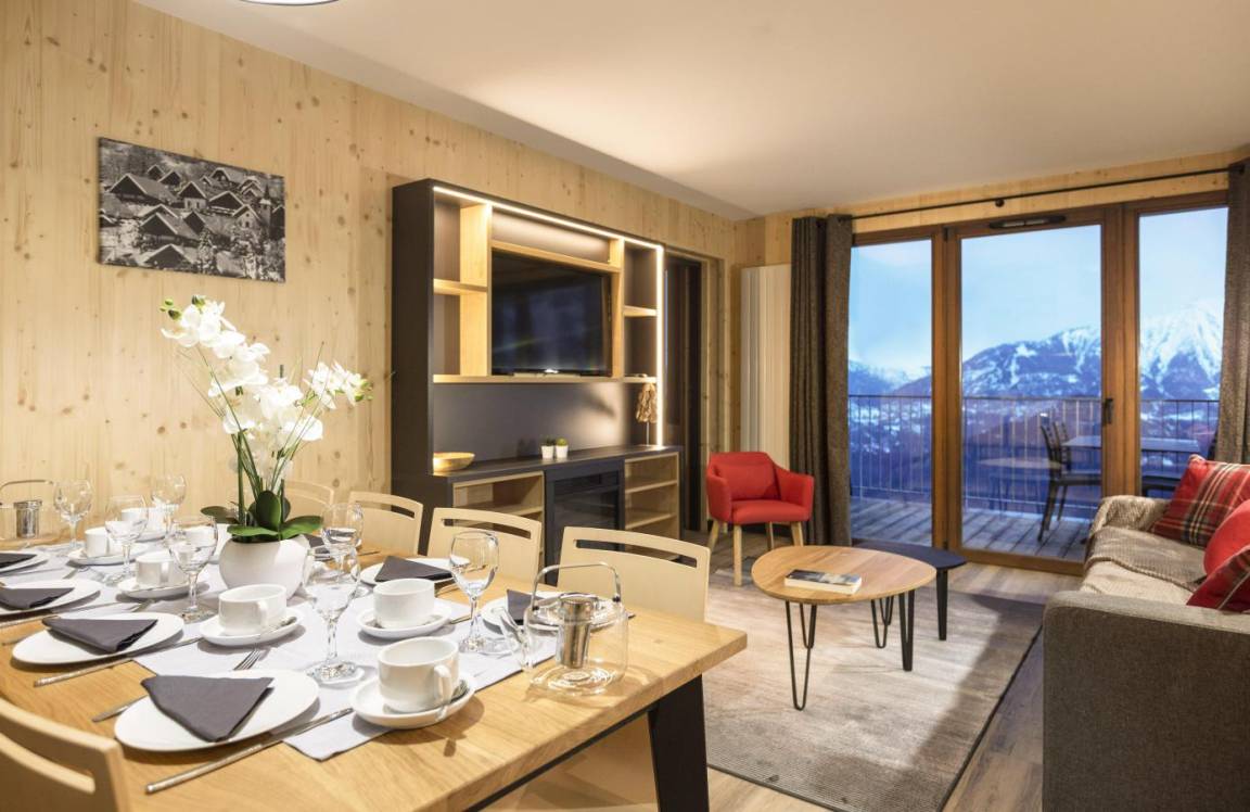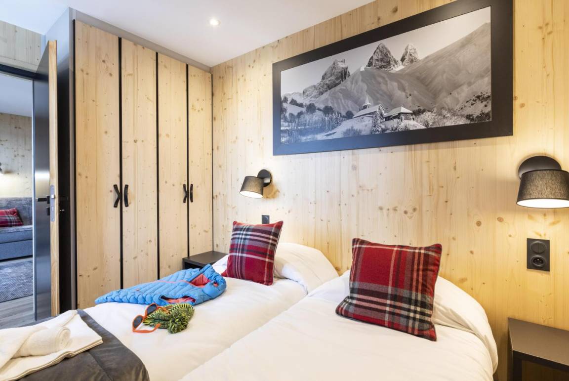 Die Residenz Club MMV L'Etoile des Sybelles 4* ist ideal im Ferienort Le Corbier gelegen. Sie befindet sich im Herzen des Dorfes, in der Nähe von Geschäften und Unterhaltungsmöglichkeiten. Die 99 voll ausgestatteten Apartments mit Balkon sind geräumig und warm und strahlen Bergatmosphäre aus. Ihre ökologische Bauweise aus modularen Holzblöcken macht sie zur ersten Ferienresidenz dieser Art. Profitieren Sie von einem Zugang pro Tag und Person zum Entspannungsbereich mit beheiztem Innen-/Außenpool, Sauna und Hammam. Fläche von ungefähr 69 m². Wohnzimmer mit Klappschlafcouch. 2 Schlafzimmer mit Doppelbett oder 2 Einzelbetten. Schlafzimmer mit 2 zwei Einzelbetten. Küche mit Wasserkocher, Kaffeemaschine, kleiner Backofen mit Mikrowellenfunktion, Geschirrspülmaschine, 2 Glaskeramikkochfelder, Kühlschrank. Badezimmer mit Haartrockner, Handtuchtrockner. Waschräume. separates WC. Balkon ODER Terrasse. Skiaufbewahrungsfach.