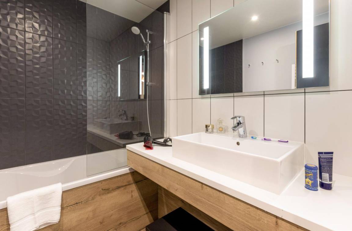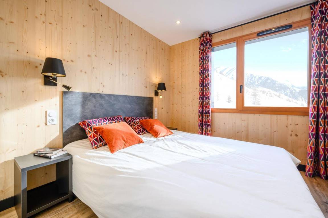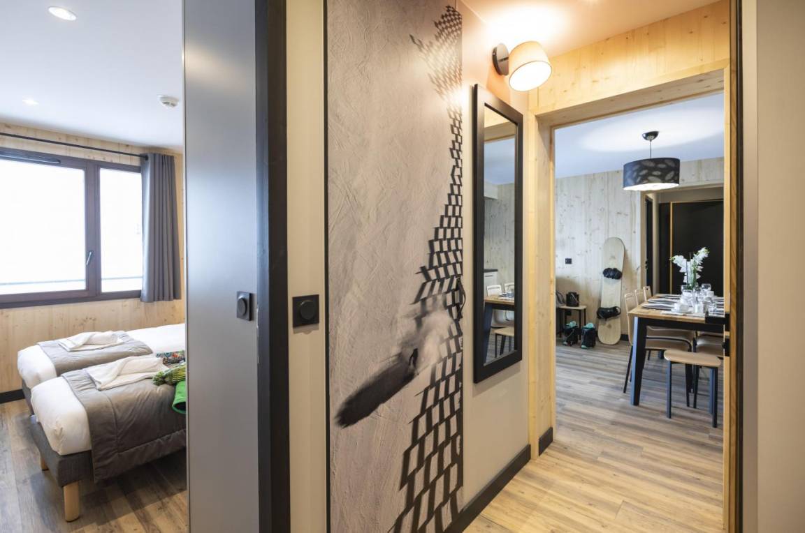 Die Residenz Club MMV L'Etoile des Sybelles 4* ist ideal im Ferienort Le Corbier gelegen. Sie befindet sich im Herzen des Dorfes, in der Nähe von Geschäften und Unterhaltungsmöglichkeiten. Die 99 voll ausgestatteten Apartments mit Balkon sind geräumig und warm und strahlen Bergatmosphäre aus. Ihre ökologische Bauweise aus modularen Holzblöcken macht sie zur ersten Ferienresidenz dieser Art. Profitieren Sie von einem Zugang pro Tag und Person zum Entspannungsbereich mit beheiztem Innen-/Außenpool, Sauna und Hammam. Fläche von ungefähr 59 m². Wohnzimmer mit Klappschlafcouch. 2 Schlafzimmer mit Doppelbett oder 2 Einzelbetten. Schlafzimmer mit 2 zwei Einzelbetten. Kochnische mit Wasserkocher, Kaffeemaschine, kleiner Backofen mit Mikrowellenfunktion, Geschirrspülmaschine, Glaskeramikkochfelder, Kühlschrank. Waschräume mit Dusche, Haartrockner, Handtuchtrockner, WC. Badezimmer mit Badewanne, Haartrockner, Handtuchtrockner. separates WC. Balkon ODER Terrasse.