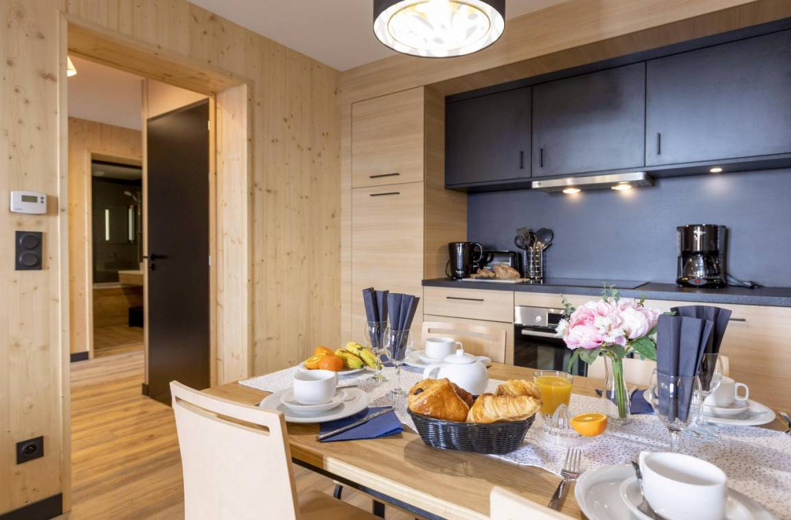 Die Residenz Club MMV L'Etoile des Sybelles 4* ist ideal im Ferienort Le Corbier gelegen. Sie befindet sich im Herzen des Dorfes, in der Nähe von Geschäften und Unterhaltungsmöglichkeiten. Die 99 voll ausgestatteten Apartments mit Balkon sind geräumig und warm und strahlen Bergatmosphäre aus. Ihre ökologische Bauweise aus modularen Holzblöcken macht sie zur ersten Ferienresidenz dieser Art. Profitieren Sie von einem Zugang pro Tag und Person zum Entspannungsbereich mit beheiztem Innen-/Außenpool, Sauna und Hammam. Fläche von ungefähr 74 m². Wohnzimmer mit Klappschlafcouch. 3 Schlafzimmer mit Doppelbett oder 2 Einzelbetten. Schlafzimmer mit 2 zwei Einzelbetten. Kochnische mit Wasserkocher, Kaffeemaschine, kleiner Backofen mit Mikrowellenfunktion, Geschirrspülmaschine, Glaskeramikkochfelder, Kühlschrank. Badezimmer mit Badewanne, Haartrockner, Handtuchtrockner. 2 Waschräume mit Dusche. 2 separate WCs. Balkon ODER Terrasse.