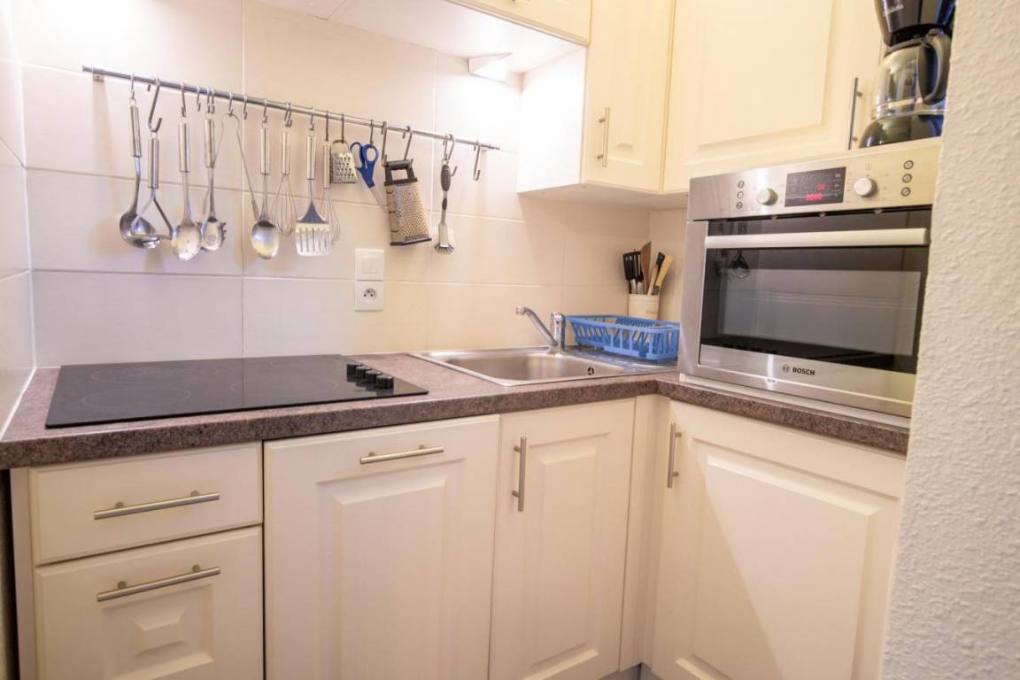 Fläche von ungefähr 35 m². 2te Etage. Orientierung : Süd. Wohnzimmer mit Klappschlafcouch. Schlafzimmer mit Doppelbett. offener Schlafbereich mit 2 Stockbetten. Kochnische mit kleiner Backofen mit Mikrowellenfunktion, Geschirrspülmaschine, Glaskeramikkochfelder, Kühlschrank. Badezimmer mit Dusche, Waschmaschine. separates WC. Balkon. Die oberen Betten sind nicht für Kinder unter 6 Jahren geeignet.