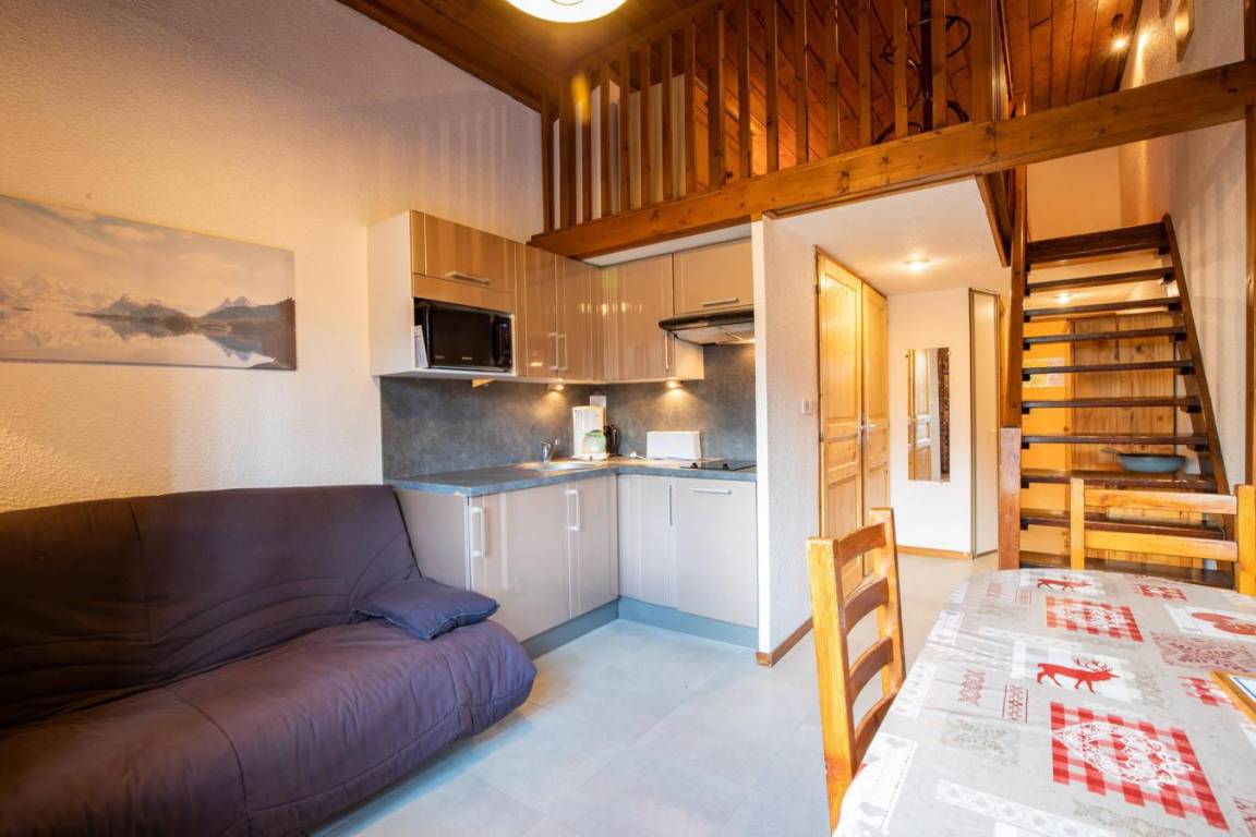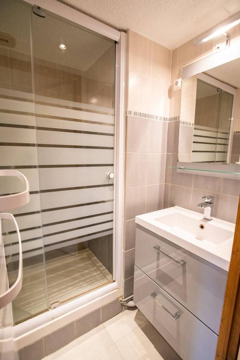 Fläche von ungefähr 32 m². 4te Etage. Orientierung : Nord-West. Wohnzimmer mit Klappschlafcouch. Schlafzimmer mit 2 Stockbetten. Mansardenzwischengeschoss (-1,80 m) mit Doppelbett. Kochnische mit kleiner Backofen mit Mikrowellenfunktion, Geschirrspülmaschine, Glaskeramikkochfelder, Kühlschrank. separates WC. Waschräume mit Dusche. Balkon. Die oberen Betten sind nicht für Kinder unter 6 Jahren geeignet.
