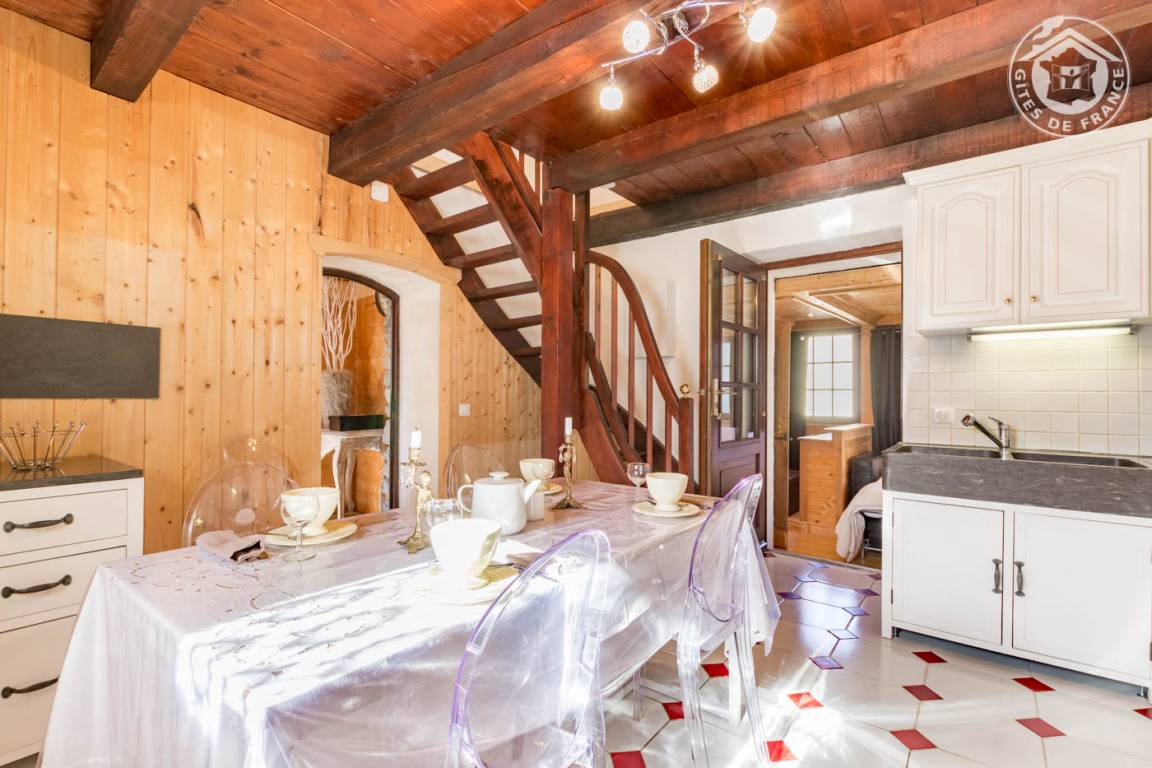 „Gîte bien situé, permettant de nombreuses et magnifiques balades dans les environs, à des degrés de difficulté divers. Nous avons été bien accueillis au Mazot. Il possède d’indéniables atouts… mais aussi quelques points faibles qu’il est bon de connaître. L’atout majeur, la vaste terrasse qui offre une large vue sur toute la vallée. Comme en attestent les photos, le logement est très joliment décoré. Il est aménagé jusque dans les plus petits détails avec un souci évident du bien-être des locataires. Des équipements très complets, tout est neuf ou très récent, et de qualité. Literie excellente et propreté irréprochable. Au chapitre du moins bien, principalement la salle de bains. Moins d’1.60 m de passage sous la porte d’entrée, et la baignoire située en point bas sous la voûte du plafond nécessite quelques acrobaties. Les escaliers sont assez raides et étroits. Enfin il manque un véritable espace salon où se poser. Donc au final, c’est à chacun de se faire son opinion selon ses critères personnels…“