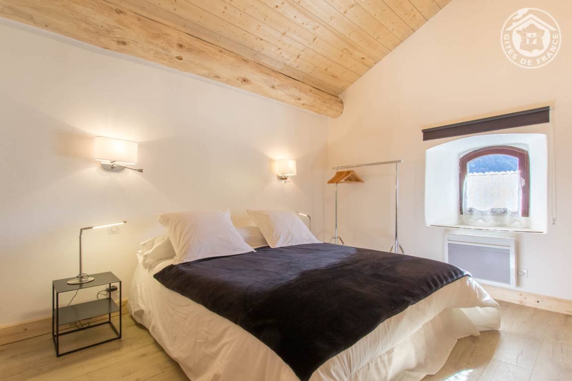 Sorgfältig renoviertes Dorfhaus auf 3 Ebenen. Erdgeschoss: Badezimmer (Höhe weniger als 1,80 m) mit Badewanne + WC. 1. Etage: voll ausgestattete Einbauküche mit Esszimmer. Wohnzimmer + Ankleidebereich. 2. Etage: Schlafzimmer im Zwischengeschoss (1 Doppelbett 160 x 200 cm). Bettwäsche inklusive und Bett gemacht. Handtücher, Haushaltswäsche und Endreinigung inklusive. Privater Parkplatz in der Nähe. Private Terrasse mit Grill und herrlichem Blick auf das Tal und das Massiv.