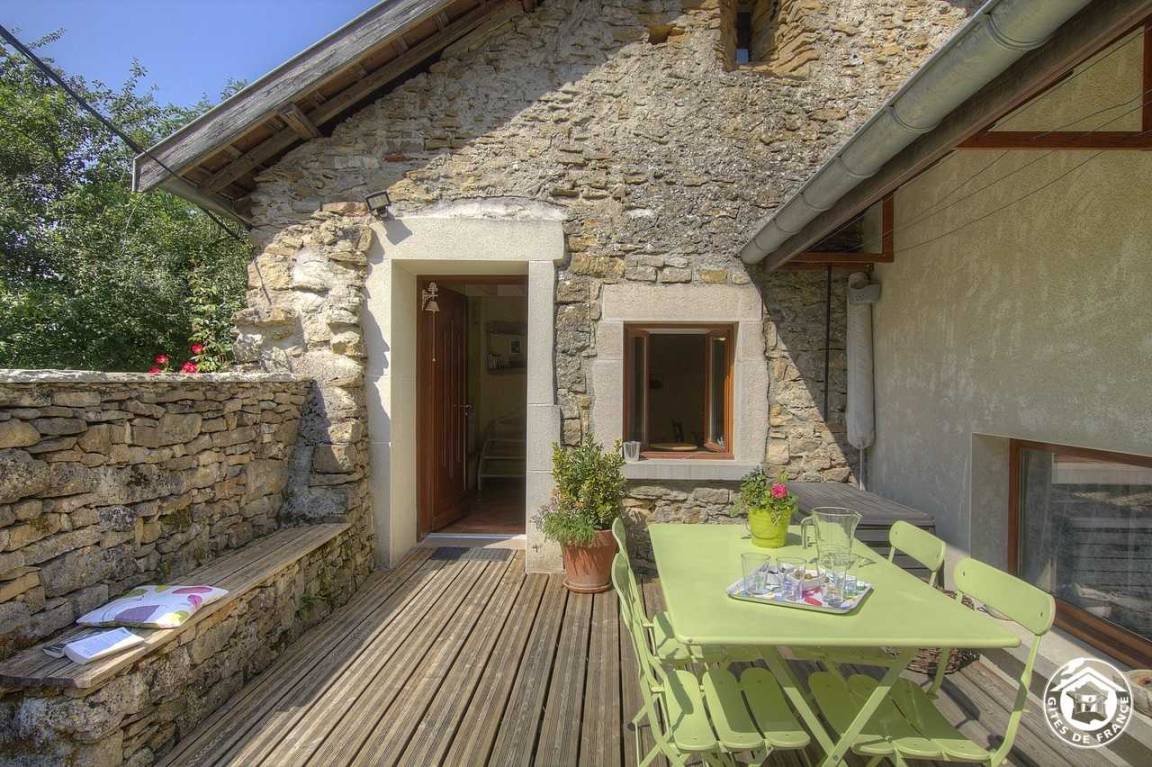 „Een compleet ingerichte gite, voor 2 personen perfect, schoon, mooie locatie uitkijkend op de Rhone (wat een prachtig helder water) of de bergen. Vriendelijke, behulpzame eigenaren. Discreet. De hele week was het tussen 30-35 graden, dan is boven slapen wel behoorlijk warm, gelukkig was er een ventilator. Eventueel zou je de slaapbank beneden kunnen uitklappen. De zon scheen mooi op de rivier, prachtige kleuren. Dichtbij kan je kajakken, zwemmen, wandelen. We hebben enorm genoten van deze week. Pérouges is een prachtig oud Middeleeuws stadje. Lac du Bourget is bijzonder mooi met een grote haven.“