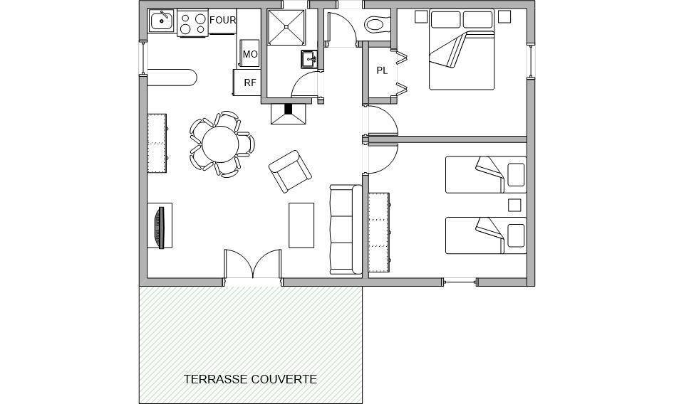 53 m² Gîte ∙ 2 Schlafzimmer ∙ 5 Gäste