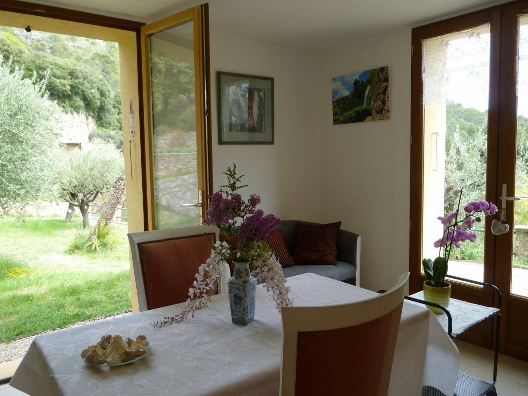 Befindet sich in einer privilegierten Lage gegenüber dem Wasserfall, auf der Klippe mit seinen Höhlenwohnungen Höhlen des 16. Jahrhunderts, und ein Park von 2 ha, schönes Ferienhaus im Erdgeschoss des niedrigen Verbrauchs des Besitzers auf einem Grundstück in einer ruhigen Haus eingezäunt von 3000 m ² mit Olivenbäumen, Obstgarten und Gärten. Terrasse mit Gartenmöbeln, Carport. Dorf 300 m, See und Gorges du Verdon 30mn, River konvertiert Schwimmen, 5 km entfernt.