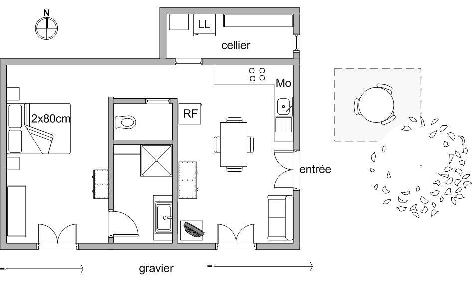 43 m² Gîte ∙ 1 Schlafzimmer ∙ 2 Gäste