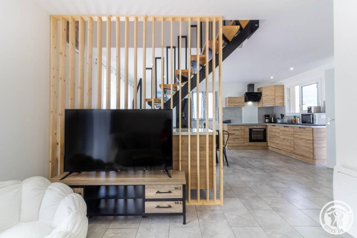 „Maison parfaitement aménagée, très moderne et propre. Tout ce dont on a besoin est là. Village calme, tout près des commerces et activités. Propriétaire accueillant. Vraiment à recommander!“