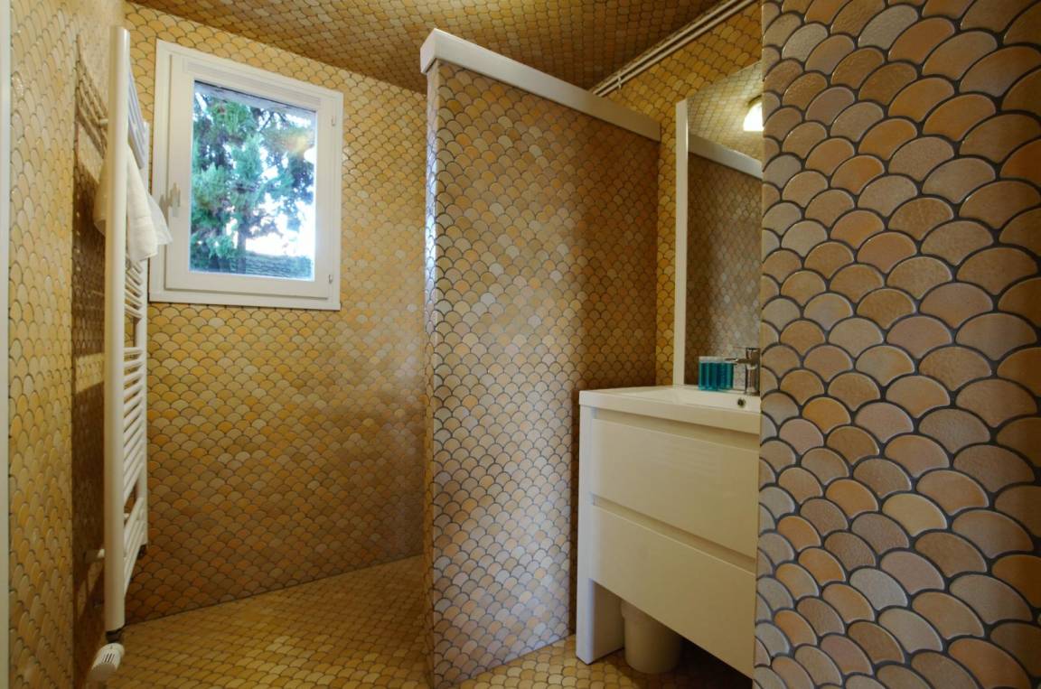 „Gite agréable et spacieux, même si la salle de bains et la cuisine mériteraient un petit coup de jeune. La piscine (chauffée) est très agréable, ainsi que le jardin. Attention toutefois avec les jeunes enfants car il y a un point d'eau non clos. Nous avons également regretté la présence d'un chien dans le gite mitoyen qui a crevé le ballon des enfants, sous le regard amusé de ses maîtres... Pourquoi autoriser les animaux? ?“