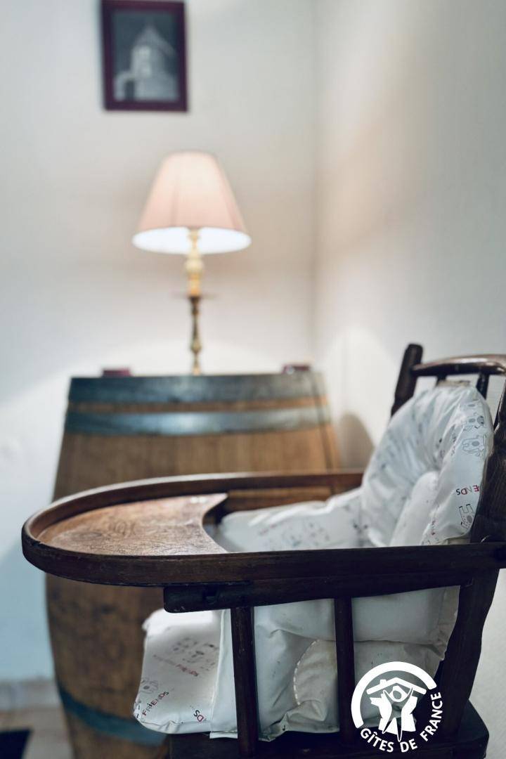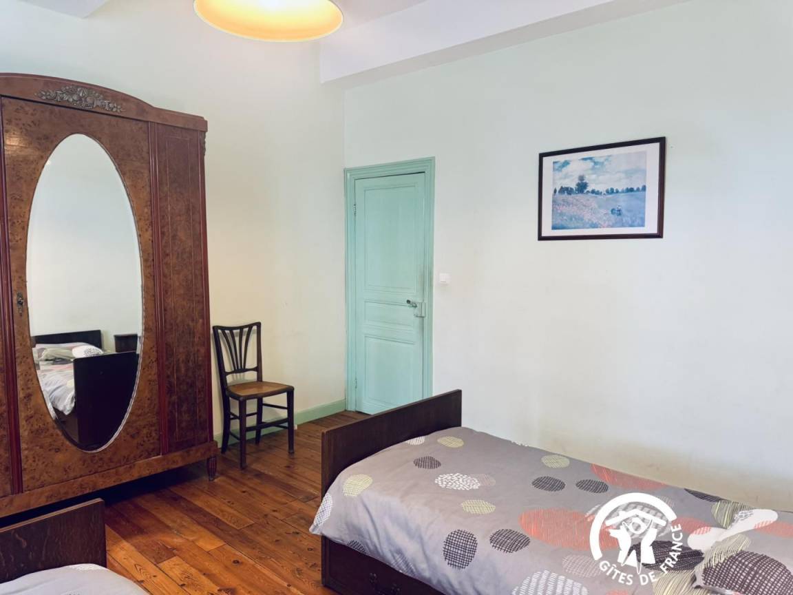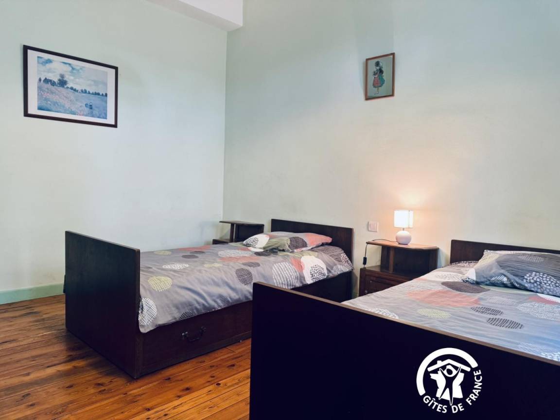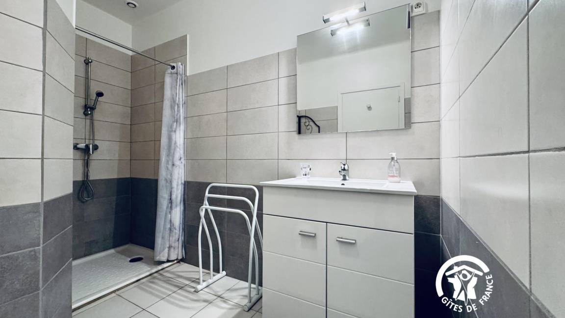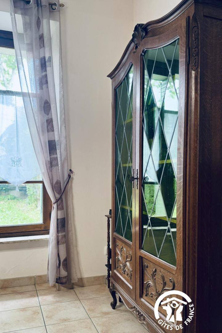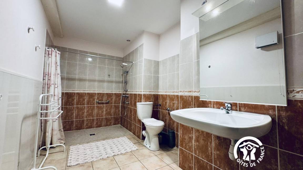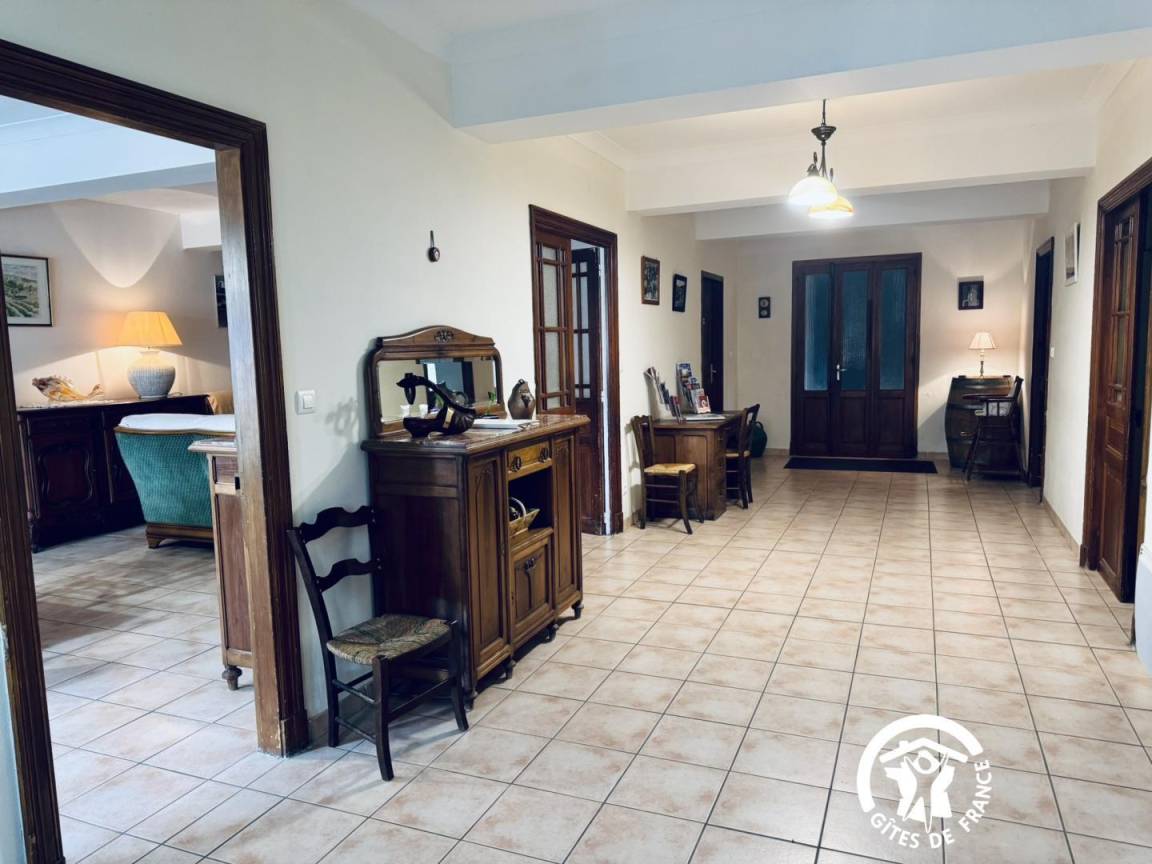 Die Gîte öffnet sich zu einem umzäunten Garten mit Blick auf die Straße, dann zu einem großen Eingang – der früher für den Durchgang von Pferden genutzt wurde – und verteilt die Zimmer im Erdgeschoss, die komplett ausgestattet sind, um Menschen mit eingeschränkter Mobilität bequem unterzubringen.