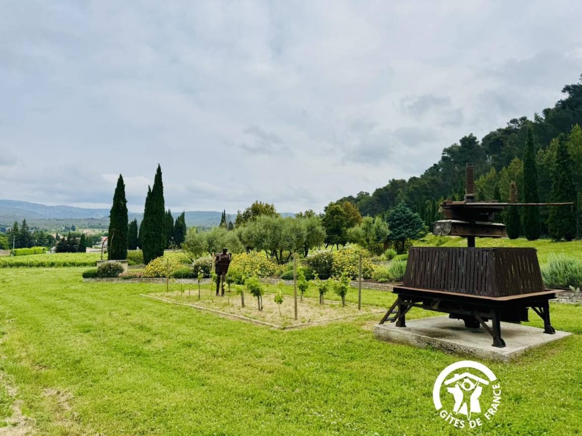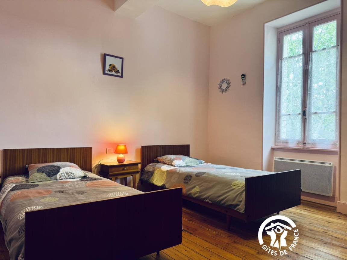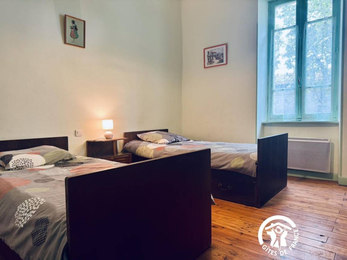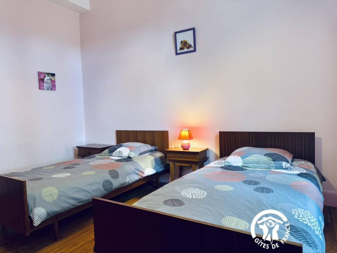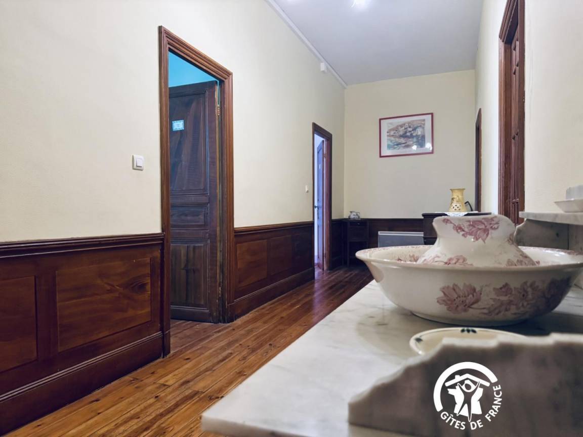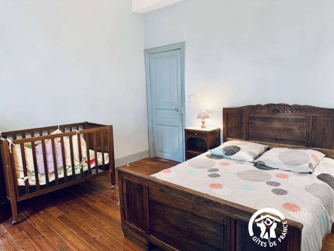 Die Gîte öffnet sich zu einem umzäunten Garten mit Blick auf die Straße, dann zu einem großen Eingang – der früher für den Durchgang von Pferden genutzt wurde – und verteilt die Zimmer im Erdgeschoss, die komplett ausgestattet sind, um Menschen mit eingeschränkter Mobilität bequem unterzubringen.