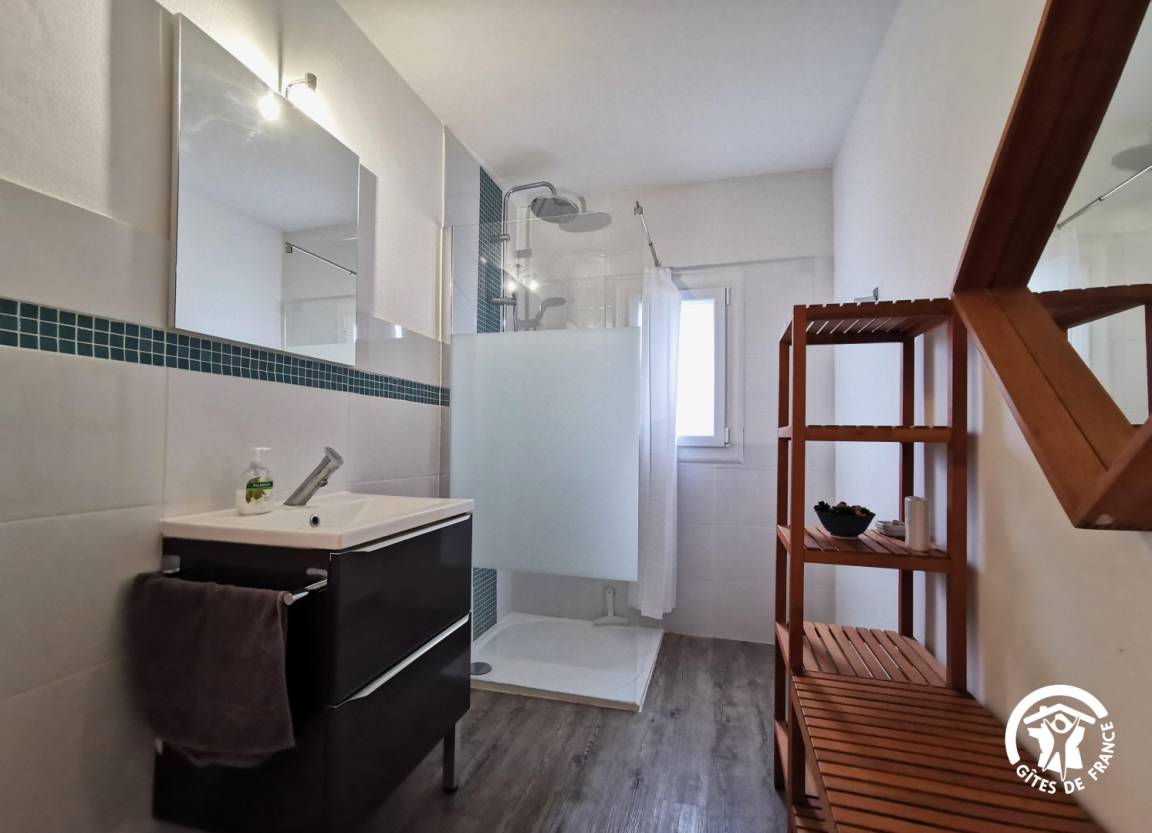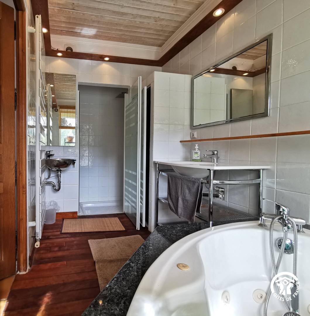 „La maison est grande, spacieuse et agréable. S'y ajoutent les terrasses. Elle est globalement confortable. Un bémol dès l'arrivée: Un four neuf mais inutilisable en raison d'un branchement défectueux. Sur le confort général: Un RDC sans défaut (salle de séjour, cuisine, 2 chambres, 2 SDB).Par contre, à l'étage (3 chambres, 1 salle d'eau commune et 1 WC), confort un peu sommaire: Literie bas de gamme, manque de penderies, niveau du receveur de douche à revoir impérativement (nécessité de 3 tapis de bain - disposés avant notre arrivée - pour parer aux débordements) et robinet de lavabo branlant.“