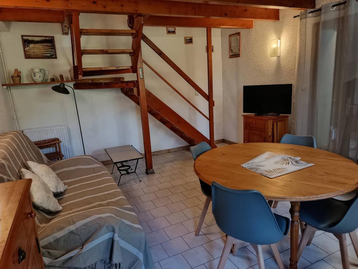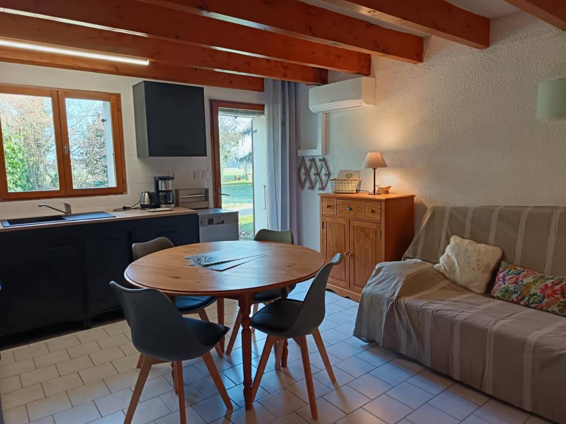 Entdecken Sie auf dem Gelände eines alten renovierten Dombiste-Bauernhofs die Gîte La Corbière auf zwei Ebenen von 37 m² auf der Rückseite des Hauses der Eigentümer.