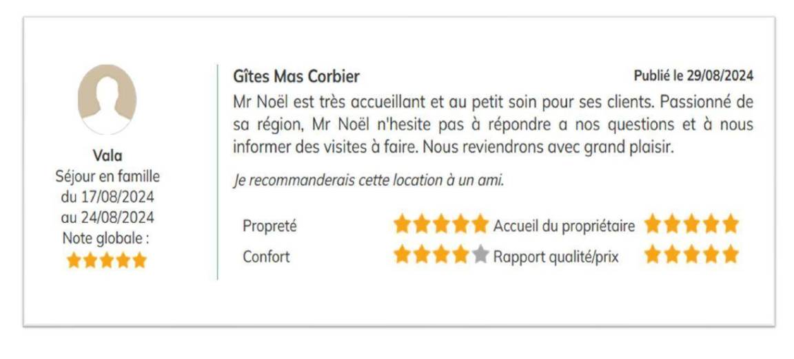 „Bonjour, Nous avons séjourné au gîte de Mr Noel du 6 au 20 juillet, nous avons passé un excellent séjour, la région est magnifique, Mr Noel nous a très bien conseillé sur tout les endroits à visiter, il y a tellement de choses à faire que nous n’avons pas eu le temps de de tout visiter. Nous reviendrons dans le gîte car nous sommes partis avec un gros pincement au coeur. Mr Noel est un propriétaire très gentil, agréable et toujours à penser à notre bien être, nous avons également apprécié ses petits cadeaux de la région. À très bientôt“