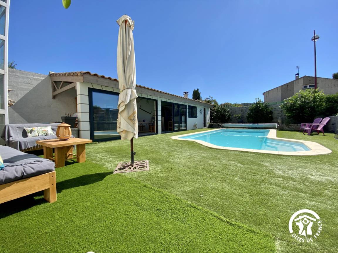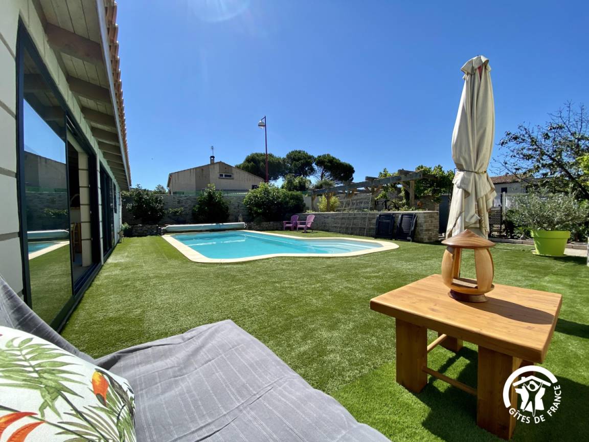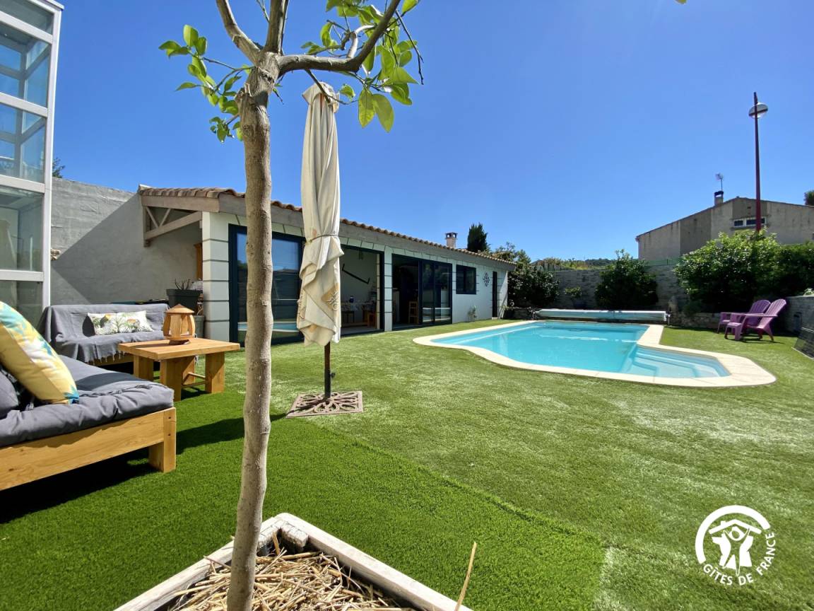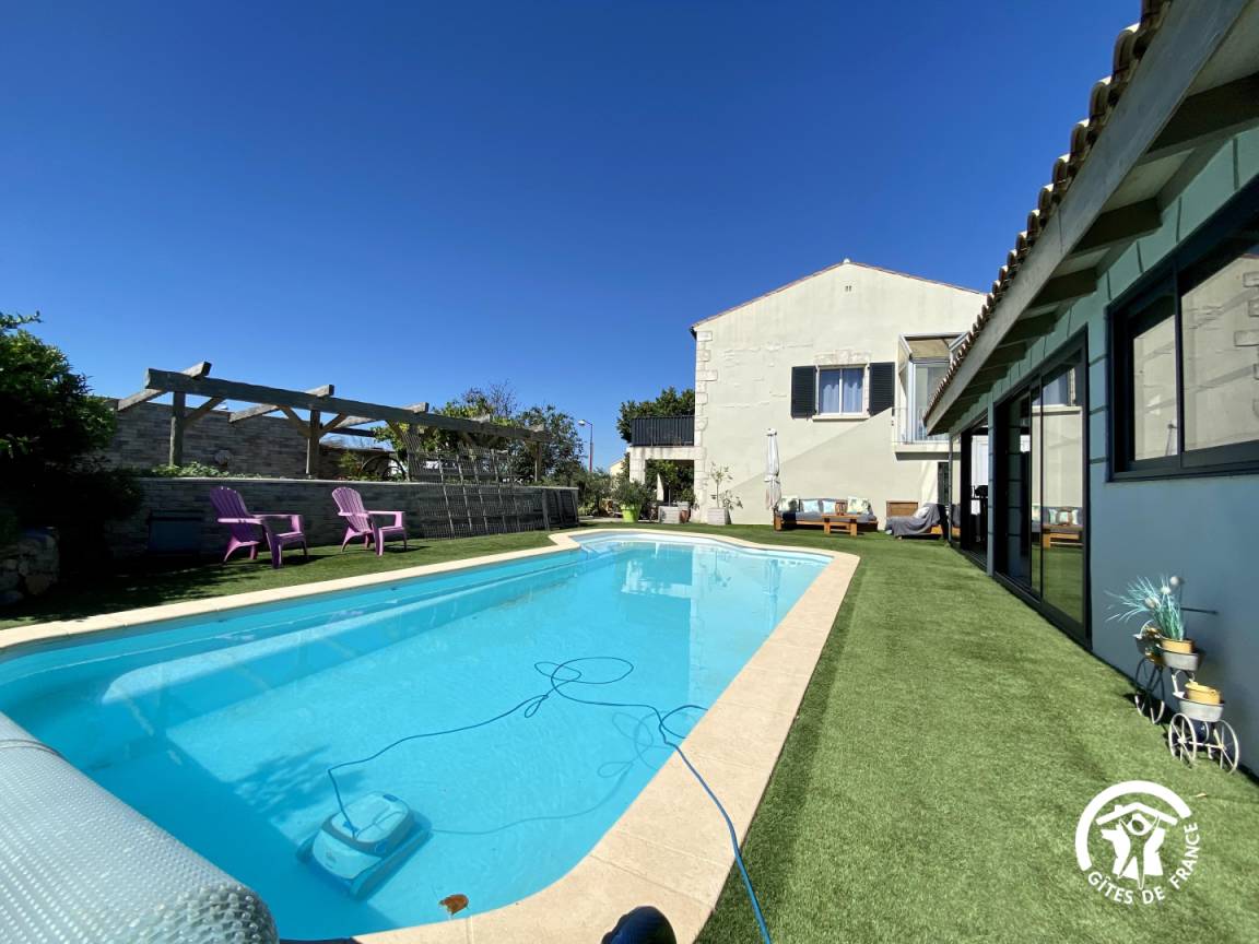 „Muriel et Michel sont des hôtes accueillants et généreux. L'appartement est spacieux, avec une cuisine équipée (comme à la maison!), le lit très confortable. Le petit balcon privé est sympa, il y a la clim (heureusement vu les températures cet été). Le jardin de nos hôtes est impressionnant, citronniers, abricotiers, tomates, aubergines, poivrons et j'en passe! Nous avons pu gouter plusieurs paniers de fruits et légumes, délicieux!La piscine est très agréable, le petit coin cosy canapés et lumières solaires est top. La plancha, à disposition, permet des grillades au bord de l'eau, avant un plongeon. A noter toutefois 2 points moins positifs: Les rues adjacentes sont assez passantes en cette saison, et le coq de la maison, pas très enclin à faire la grasse matinée, pour les non- initiés (comme nous) vous réveille tous les matins. Prévoir des boules quiès. Un gros coup de coeur pour ce gite avec des hôtes particulièrement prévenants.“