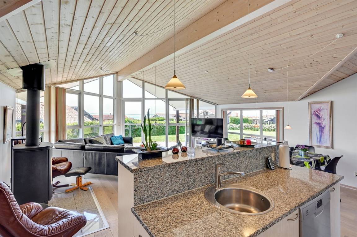 „Advice to other guests: Desværre nåede vi ikke at nyde sommerhusets grund fuldt ud grundet kraftig regn og kraftig blæst i den uge (30 -2022), hvor vi havde vores ferieophold der, og det er utroligt ærgerligt, da grundens terrasse-områder er fantastiske. Til gengæld nød vi til fulde, hvad huset bød på af muligheder indendørs, hvor både aktivitetsrum (helt fantastisk og yderst velholdt), stue (så hyggelig) og køkken (åbent, så man hele tiden er i kontakt med de andre i huset) blev flittigt brugt. I øvrigt en fantastisk udsigt ud mod vandet fra stuens vinduer. Er man til ferieaktiviteter udenfor området, så vil det være en klar fordel med eget køretøj, da der er langt til alt. Til gengæld kan man ellers nyde gåture i sommerhusområdet og de grønne områder. Bademulighederne er ikke de bedste, da der er mange sten og skaller, så badesko er en klar fordel, men er man samler af sten og skaller, så er der rig mulighed for at gå på samlerobjekt-jagt, da der ligger voldsomt mange over det hele :) Eneste minus ved huset var kloaklugten på toiletterne, som til tider var ret kraftig. Og så en lille opfordring vedrørende knager på værelserne. Det kunne være dejligt at have nogle knager til at hænge trøjer, morgenkåber og andre beklædningsgenstande på, så det ikke skal ligge på sengen eller lægges ind i skabene ved det rene tøj. Har man brug for fred og ro, så er dette et godt sted at finde det, da det er et meget roligt område. Og vil man til et sommerhus, hvor man føler, at ejerne tager godt hånd om det, så lejerne også får en fantastisk oplevelse, så hører dette sommerhus absolut til i toppen :)“