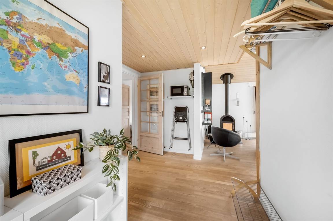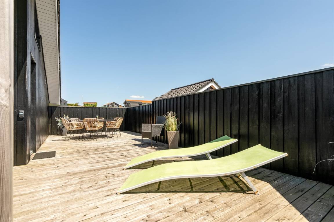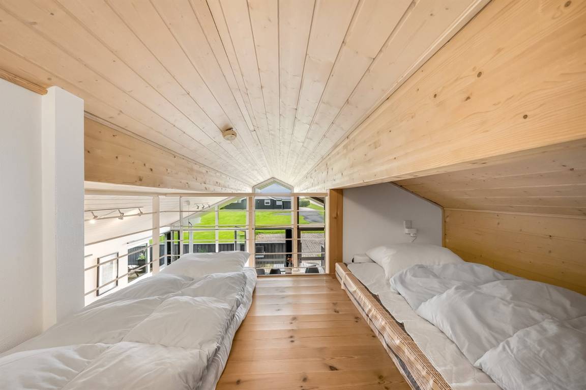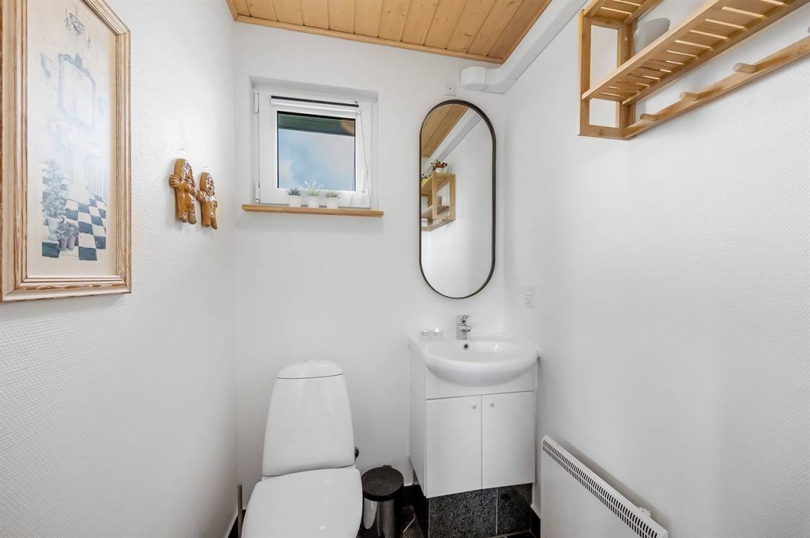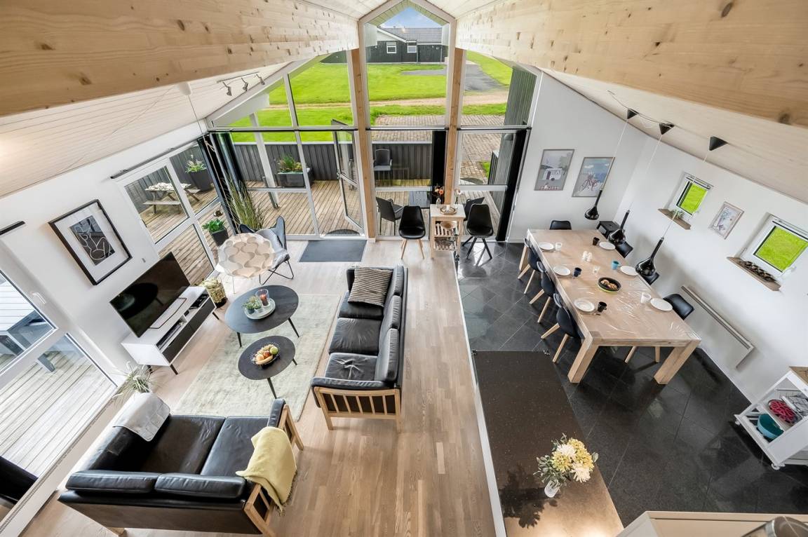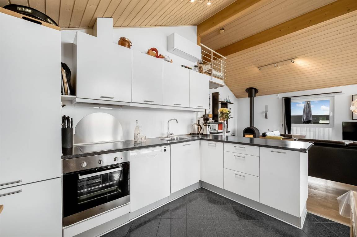 Besonders hübsches Ferienhaus aus Holz, 2005 gebaut, auf einem schönen Natur-/Gartengrundstück nur 300 m vom Wasser entfernt gelegen. Sowohl vom Haus als auch vom Grundstück gibt es eine hübsche Aussicht über das Wasser. Zum Haus gehören eine schöne, große, sowohl offene als auch überdachte Terrasse mit diversen Gartenmöbeln. Hübsche beheizbare Klinkerböden in der Küche, Essabteilung und im Badezimmer. Holzböden in den übrigen Räumen. Hell gestrichene Wände sowie Holzdecken. Schönes, großes Badezimmer mit Duschnische, 2-Pers.-Whirlpool sowie direktem Zugang zur Sauna des Hauses. Ferner schöne Gästetoilette. Küche in offener Verbindung mit dem Wohnzimmer, die mit u. a. Geschirrspüler, Mikrowelle, Umluftofen, Herd mit Ceran-Feld und Tiefkühlgerät ausgestattet ist. Schönes großes und nett möbliertes Wohnzimmer mit Kaminofen, DVD-Spieler, TV mit digitalem Satellitenanschluss und Stereoanlage mit CD-Spieler sowie Kostenlose WI-FI Internetverbindung. Die Schlafplätze des Hauses verteilen sich auf 2 Schlafzimmer mit Doppelbett und 1 mit 2 Einzelbetten sowie ein gutes offenes Obergeschoss mit 2 Schlafplätze für Kinder. An weiterer Ausstattung können Waschmaschine sowie Wäschetrockner erwähnt werden und es ist eine energiesparende Wärmepumpe installiert. Für die Kinder stehen Kinderhochstuhl und Kinderbett sowie Sandkasten, Schaukel, Rutsche und verschiedene Spiele zur Verfügung. Ein sehr schönes Ferienhaus zu jeder Jahreszeit, das in einem schönen Feriengebiet mit vielen Aktivitätsmöglichkeiten liegt, u. a. Windsurfing, Angeln, Put & Take, Baden sowie Spaziergänge in der schönen Natur.