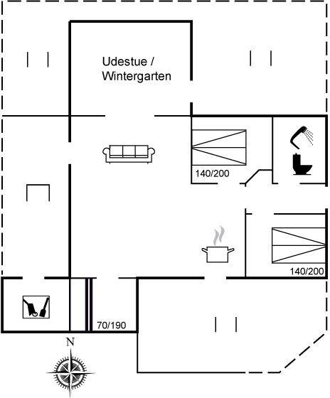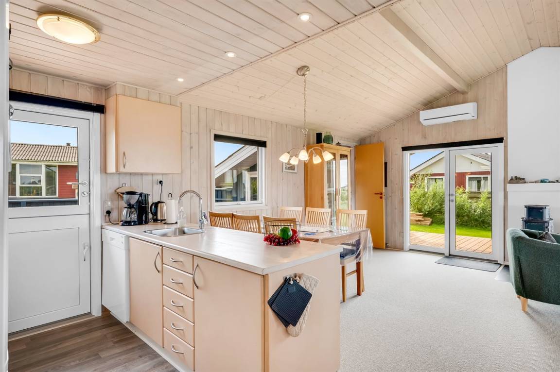 DraußenDie Ferienunterkunft liegt auf einem 800 m² großen Gartengrundstück. Die Entfernung zum Fjord beträgt 150 m. Die nächste Einkaufsmöglichkeit liegt 4000 m entfernt. Es steht ein 68 m² Terrassenareal zur Verfügung. Außerdem gibt es 12 m² überdachte Terrasse. Zutritt zu einem Wintergarten. Geräteraum. Schaukel. Sandkasten. Die Entfernung zu einem Spielplatz beträgt 300 m. Parkplatz auf dem Grundstück.