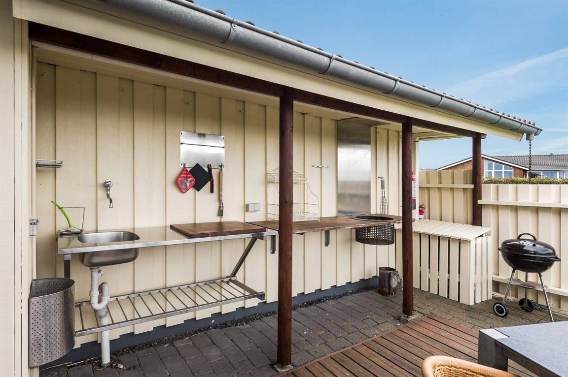 DraußenDie Ferienunterkunft liegt auf einem 1100 m² großen Gartengrundstück. Die Entfernung zum Fjord beträgt 300 m. Die nächste Einkaufsmöglichkeit liegt 6000 m entfernt. Es steht ein 60 m² Terrassenareal zur Verfügung. Außerdem gibt es 15 m² überdachte Terrasse. Geräteraum. Schaukel. Sandkasten.Es beteht die Möglichkeit das Essen in der Außenküche zuzubereiten. Parkplatz auf dem Grundstück.