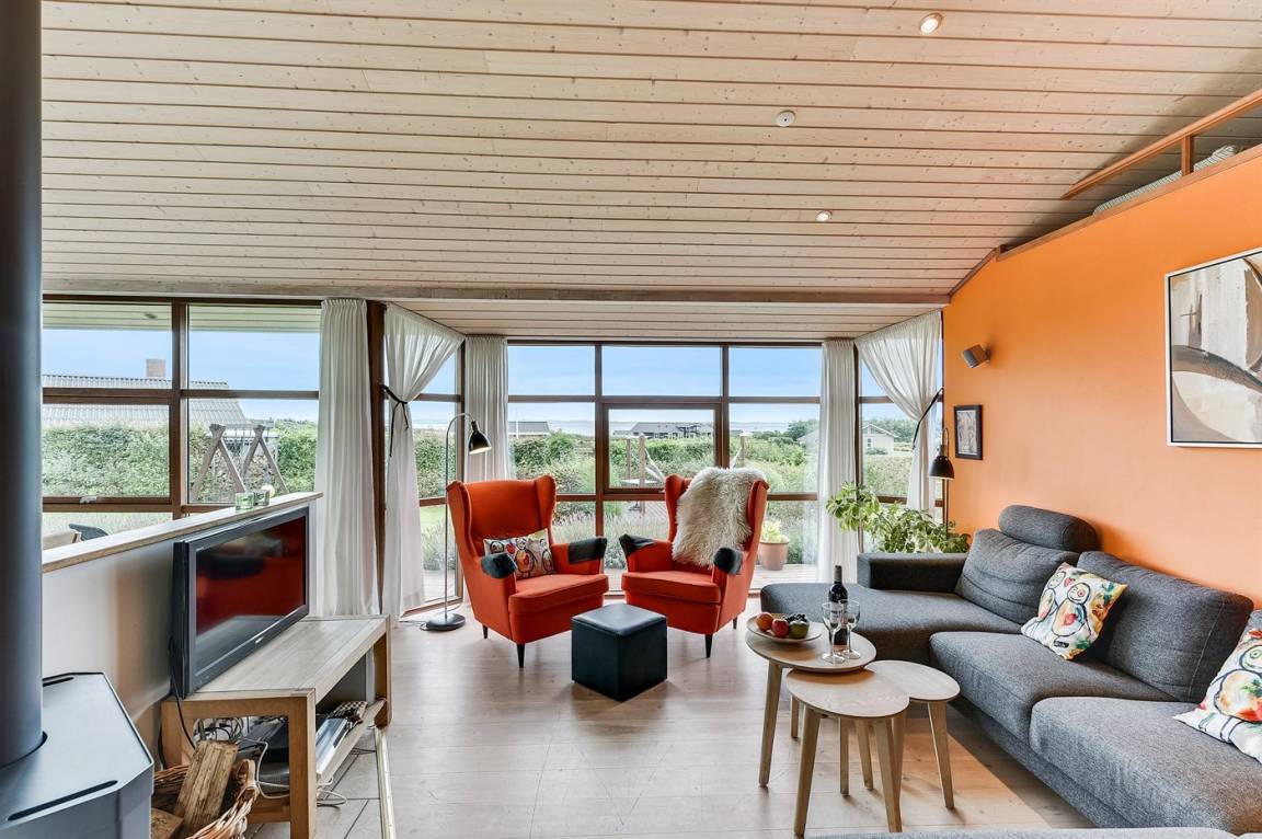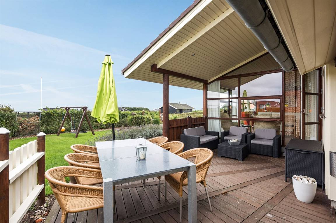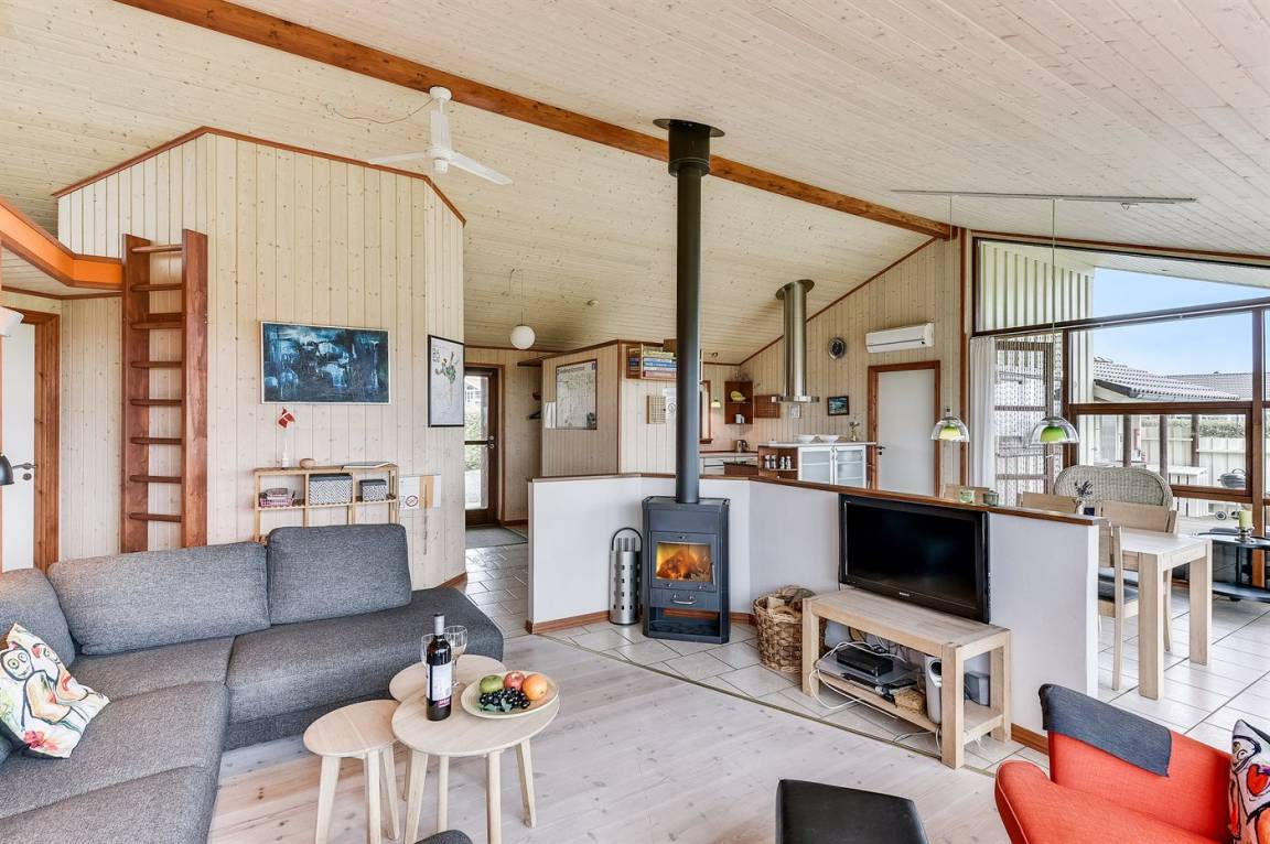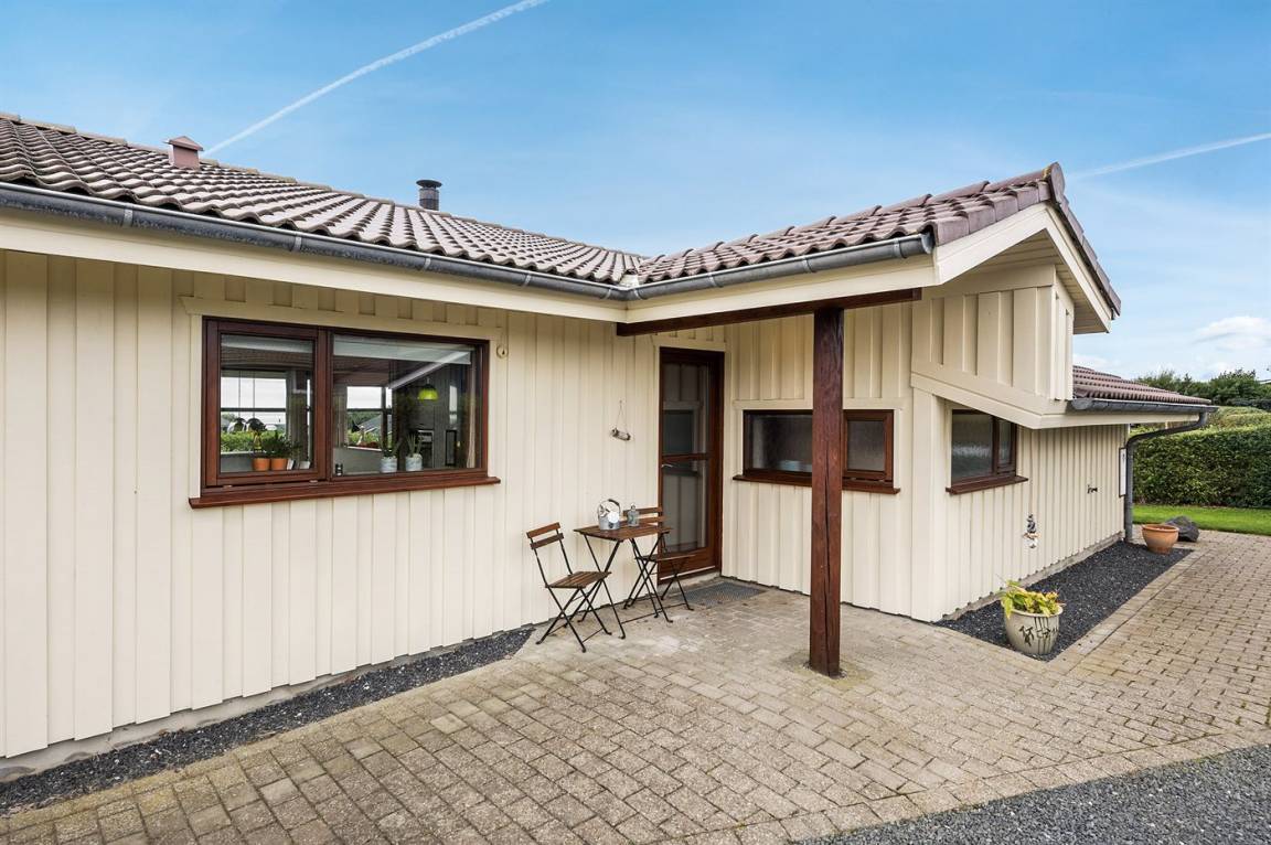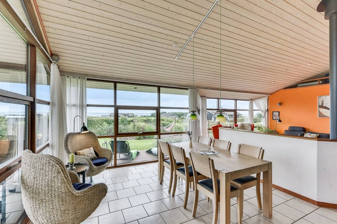 Dieses schöne Ferienhaus liegt auf einem Natur-/Gartengrundstück mit Ausblick auf den Fjord - sowohl vom Haus als auch vom Grundstück. Das Haus ist von offenen und überdachten, kreisförmigen Terrassen mit Gartenmöbeln und einer großen Außenküche umgeben - daher besteht die Möglichkeit den ganzen Tag hindurch ein sonniges Plätzchen zu finden. Übrigens: 3 der insgesamt 8 Schlafplätze befinden sich im offenen Obergeschoss des Hauses.