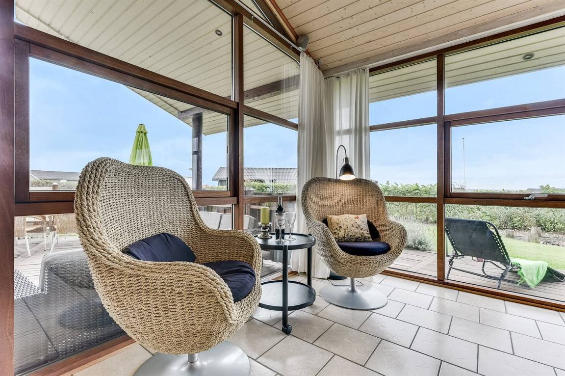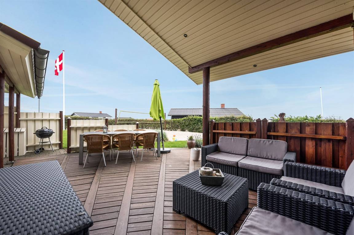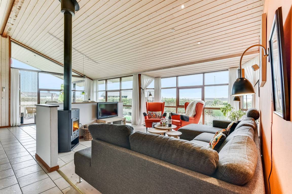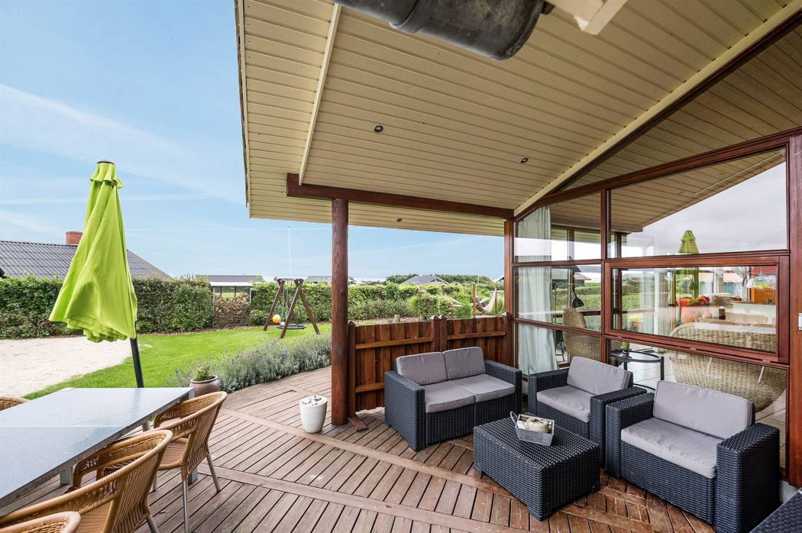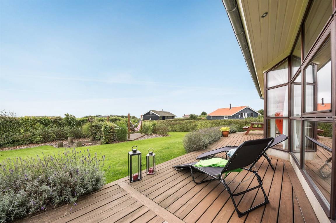 Dieses schöne Ferienhaus liegt auf einem Natur-/Gartengrundstück mit Ausblick auf den Fjord - sowohl vom Haus als auch vom Grundstück. Das Haus ist von offenen und überdachten, kreisförmigen Terrassen mit Gartenmöbeln und einer großen Außenküche umgeben - daher besteht die Möglichkeit den ganzen Tag hindurch ein sonniges Plätzchen zu finden. Übrigens: 3 der insgesamt 8 Schlafplätze befinden sich im offenen Obergeschoss des Hauses.