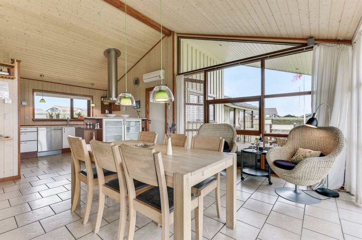 EinrichtungDas Ferienhaus eignet sich für 8 Personen sowie 1 Kleinkind bis zu 3 Jahren. 2 der Schlafplätze eignen sich jedoch nur für größere Kinder (4-11 Jahre). Die Ferienunterkunft hat eine Wohnfläche von 125 m² und wurde 2005 gebaut. Haustiere dürfen nicht mitgebracht werden. Die Ferienunterkunft ist mit energiesparender Wärmepumpe ausgestattet. Fußbodenheizung in allen Räumen. Die Ferienunterkunft ist mit Waschmaschine ausgestattet. Wäschetrockner. Tiefkühlmöglichkeit mit 100 Liter Nutzinhalt. Es gibt außerdem einen Kaminofen. Für die jüngsten Feriengäste ist 1 Kinderhochstuhl vorhanden.