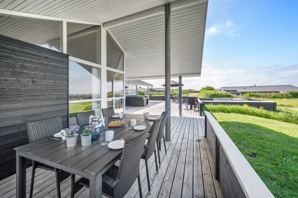 DraußenDie Ferienunterkunft liegt auf einem 1044 m² großen Naturgrundstück. Die Entfernung zum Fjord beträgt 150 m. Die nächste Einkaufsmöglichkeit liegt 2000 m entfernt. Es steht ein 170 m² Terrassenareal zur Verfügung. Außerdem gibt es 30 m² überdachte Terrasse. Geräteraum. Petanque. Es ist ein Ladestecker für Elektroautos installiert. Ladestecker Typ 2. Mit einer Ladeleistung von 11 kW. Parkplatz auf dem Grundstück.