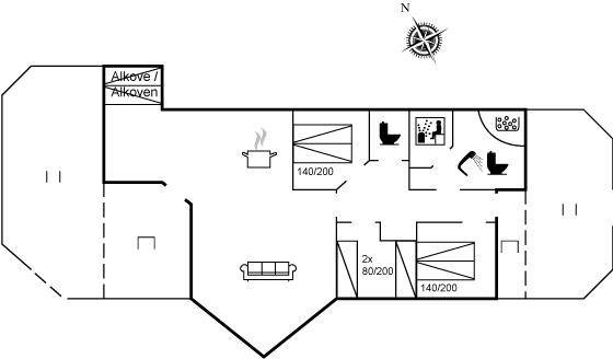 SchlafverhältnisseDie Schlafplätze verteilen sich auf 3 Schlafräume. 4 Schlafplätze in Doppelbetten. 2 Schlafplätze in Einzelbetten.2 Schlafplätze im Alkoven. Ferner steht ein Kinderbett zur Verfügung.