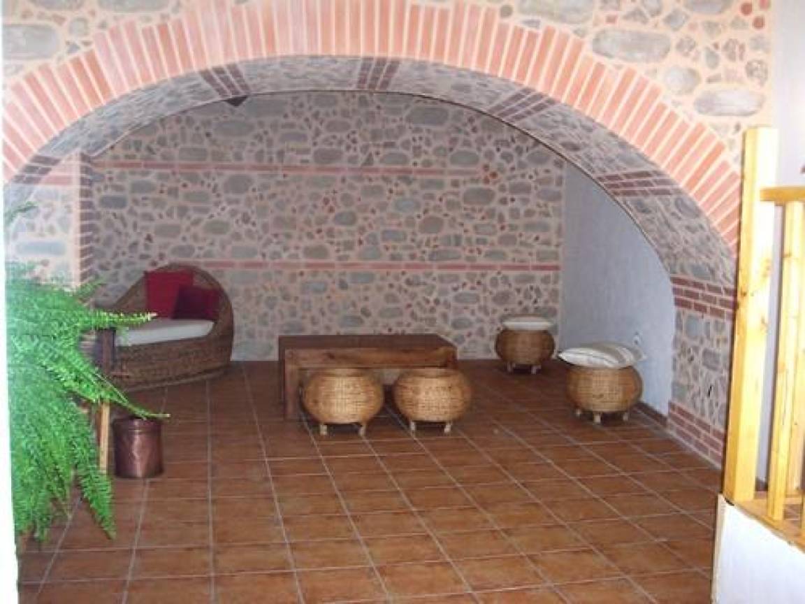- Zugang über zwei Stufen: ein zusätzlicher Aufenthaltsraum mit Gewölbedecke und freigelegten Steinwänden