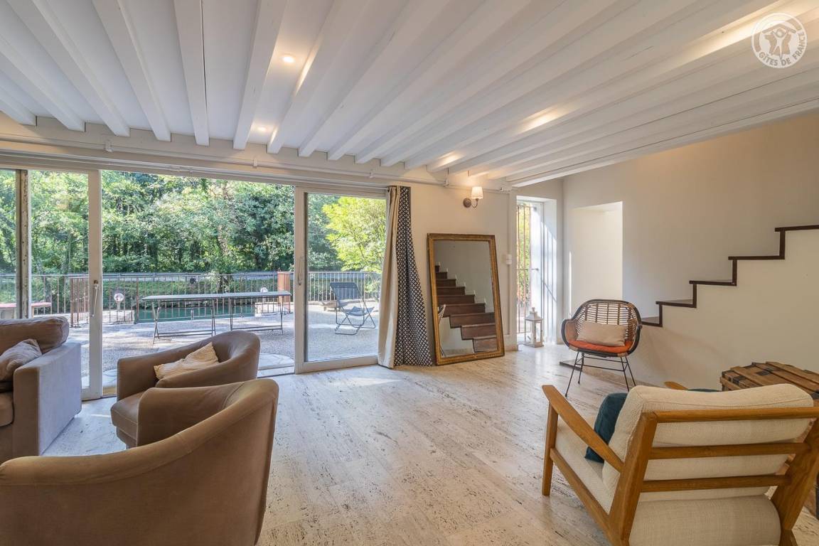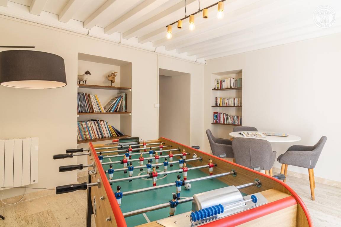 Individuelles Ferienhaus auf einem 2,5 ha großen Grundstück. Erdgeschoss: Eingang, Küche, Wohnzimmer, Esszimmer und Spielzimmer (Tischfußball und Leseecke). 2 separate Toiletten und Badezimmer (Dusche). Wäschekammer. 1. Stock: Zweites Wohnzimmer mit TV, 6 Schlafzimmer (1 Doppelbett in jedem Schlafzimmer). 2 separate Toiletten und 4 Badezimmer (Badewanne und Dusche). 2. Etage: 2 Schlafzimmer (1 Doppelbett). 2 unabhängige Toiletten und 2 Badezimmer, eines mit Doppeldusche. Land mit Bambushain. Privater Zugang zum Savières-Kanal. Bootshaus mit Kanus und Booten ohne Führerschein vorhanden (Details erfragen Sie beim Eigentümer). Bouleplatz und Tischtennisplatte. Möglichkeit der Verpflegung mit einem Koch vor Ort (Details erfahren Sie beim Eigentümer).