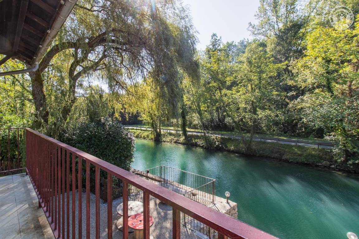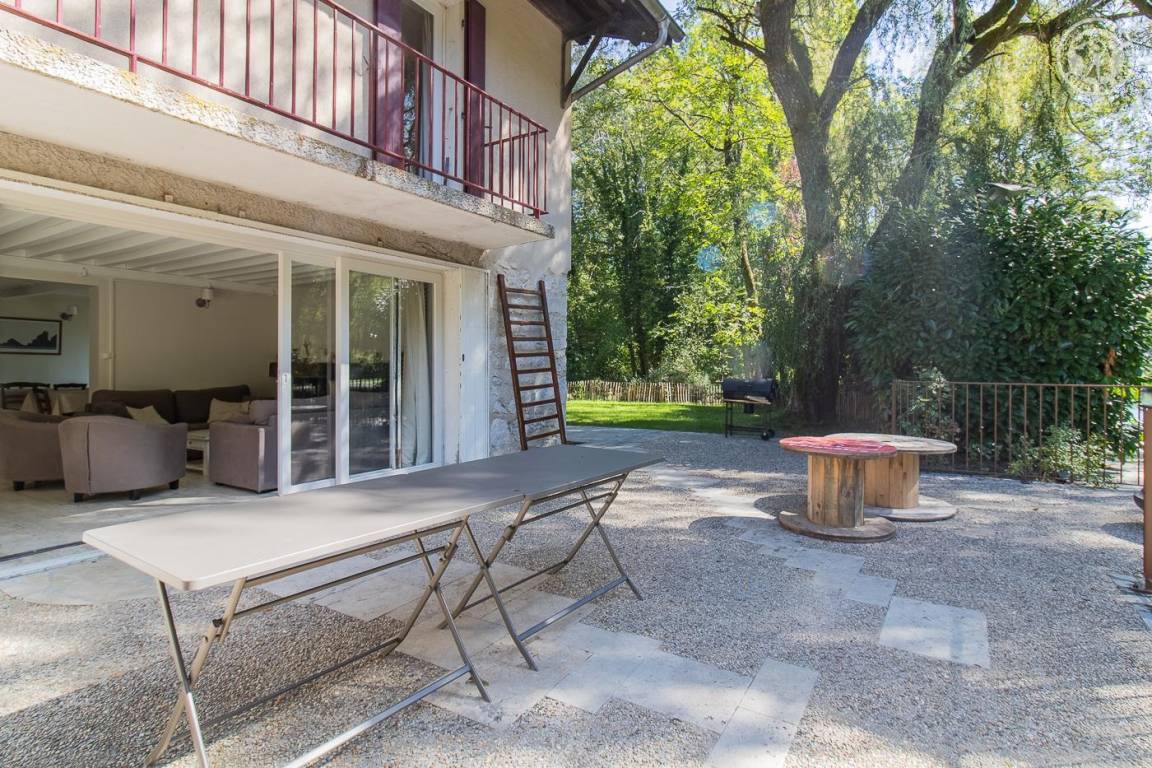 Ein paar Reihen vom Lac du Bourget entfernt genießt dieses ehemalige Fährmannshaus, ein Anwesen mit Charakter, einen privaten Zugang zum Savières-Kanal. Ruhige und exotische Umgebung mit 2,5 ha Waldland. Ausrichtung an einem Südosthang mit viel Sonnenschein. Einfamilienhaus im Landhausstil mit sanften Farben und Holzmöbeln. Hochwertige Ausstattung und vielseitige Dekoration sorgen für eine warme Atmosphäre. Große Terrasse mit Blick auf den Kanal mit Privatstrand und Bootsponton. Großes Landschaftsgelände mit Pétanque-Platz und Tischtennisplatte und kleinem exotischen Garten mit Bambushain. Spielzimmer mit Tischfußball zur Unterhaltung von Kindern und Erwachsenen.