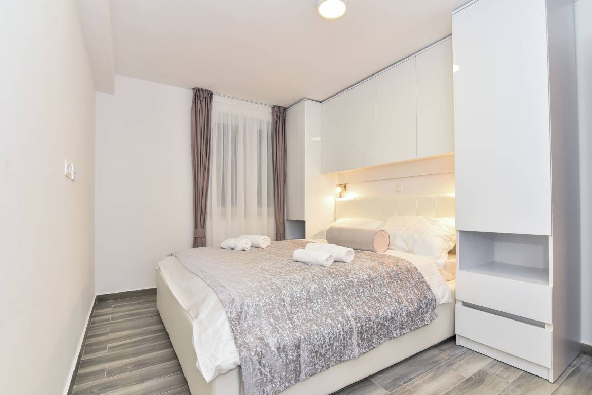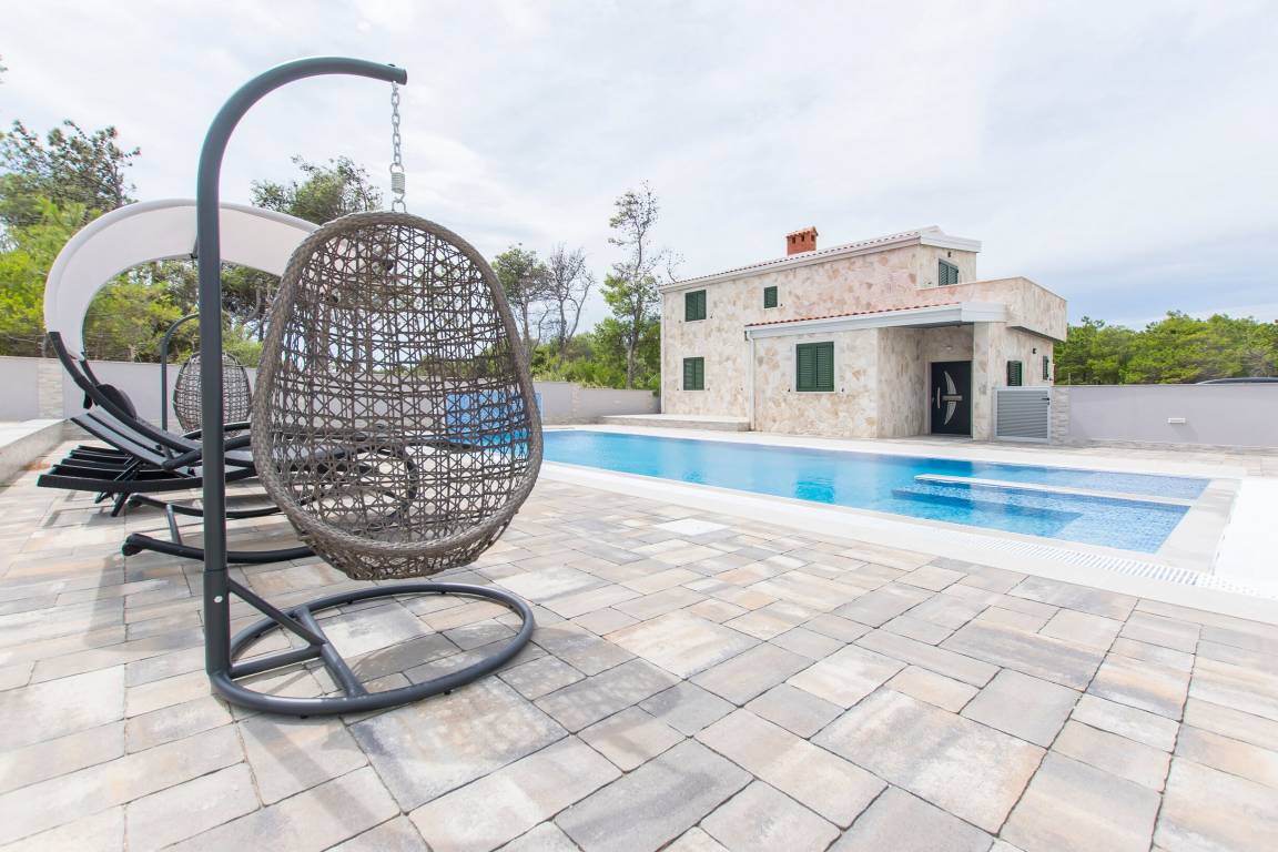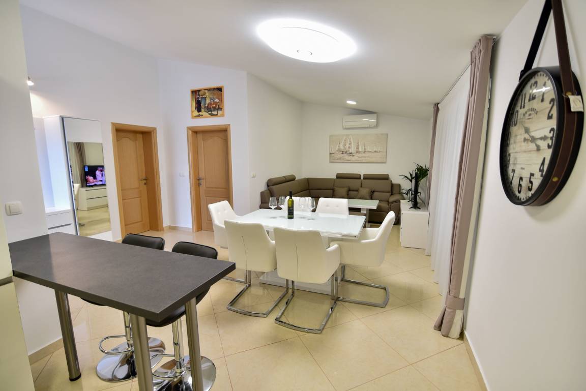Das steinerne Haus wurde in einem modernen Baustil direkt am Meer erbaut und das Apartment bietet Platz für maximal 5 Personen. Es besitzt einen Balkon mit Blick auf das Meer und das Velebit Gebirge.