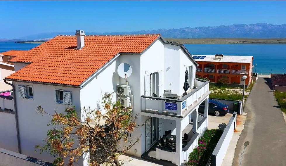Nichtraucher Apartment für bis 4 Personen (2E + 2K ) Wohnzimmer mit Schlafcouch, Balkon mit Meerblick, 1 Schlafzimmer mit Doppelbett, Küche, Duschbad, Parkplatz, WLAN, Obergeschoss.