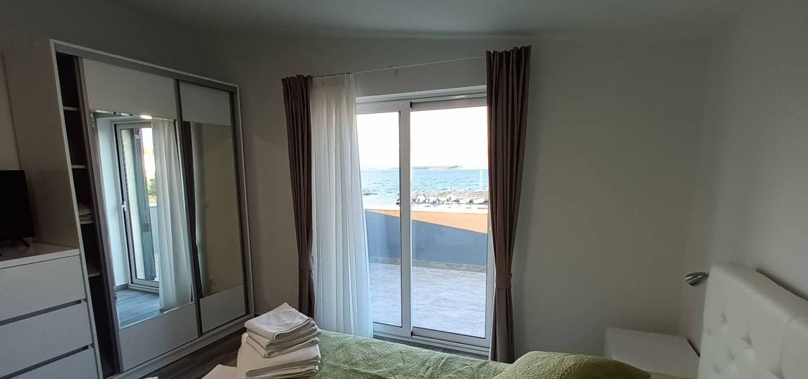 Die Villa befindet sich auf der Insel Vir, in einer ruhigen Umgebung, direkt am Wasser 30 m vom Kiesstrand entfernt. In unmittelbarer Nähe befinden sich eine Bäckerei, Restaurants, Einkaufsmöglichkeit, und eine Bushaltestelle. Das Zentrum ist 800m entfernt.
