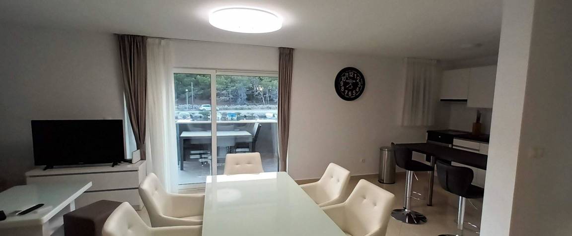 Das Apartment befindet sich auf der Insel Vir, in einer ruhigen Umgebung, direkt am Wasser, 30m vom Kiesstrand entfernt. In unmittelbarer Nähe befinden sich Bäckerei, Einkaufsmöglichkeiten, Restaurants sowie eine Bushaltestelle. Das Zentrum ist 800m entfernt.