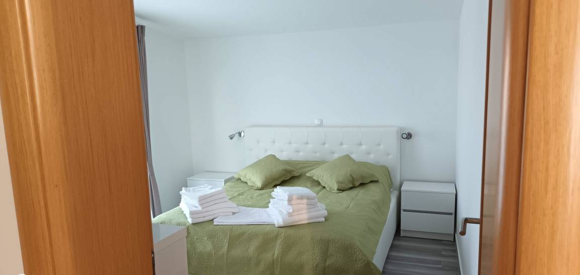 Das Apartment in Größe von 130 qm verfügt über zwei Schlafzimmer und zwei Bäder. Der Wohn- und Essbreich ist mit einem Schlafsofa sowie Essgelegenheit für 6 Personen ausgestattet. Die offene Küche ist mit einem Backofen, 4-Platten-Cerankochfeld-Herd, Spülmaschine, Mikrowelle, Toaster, Wasserkocher, Kaffeemaschine sowie ausreichend Geschirr ausgestattet. Zusätzlich ist noch ein Bügelzimmer mit Bügeleisen, Bügelbrett und Waschmaschine vorhanden.