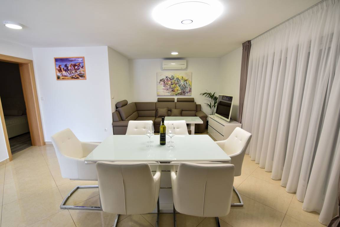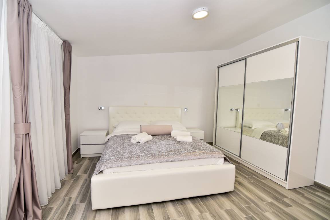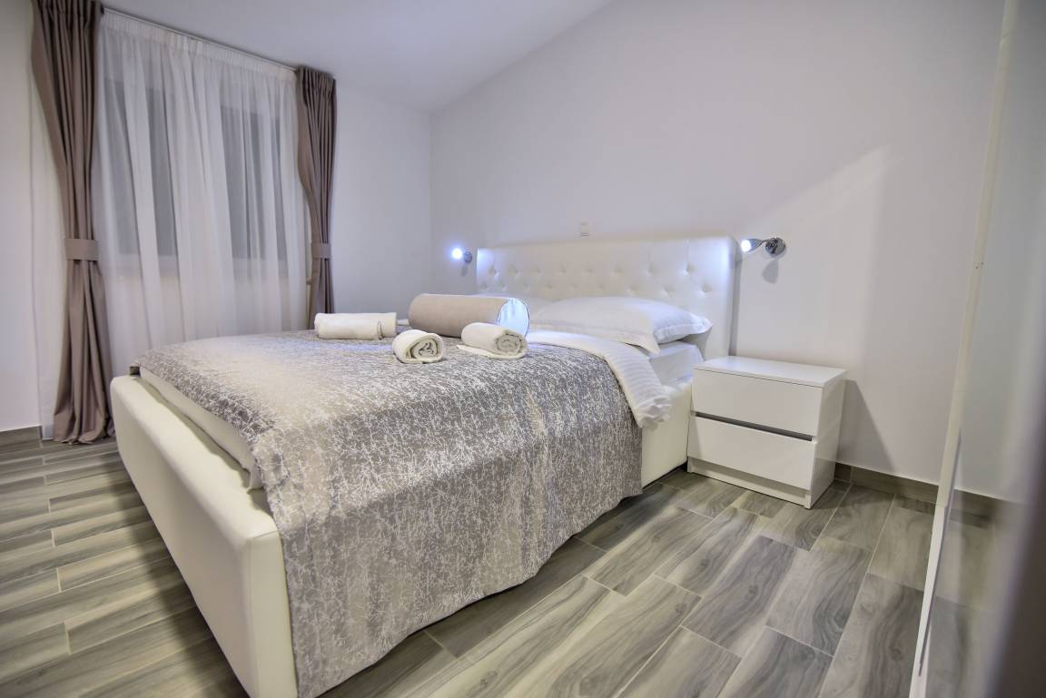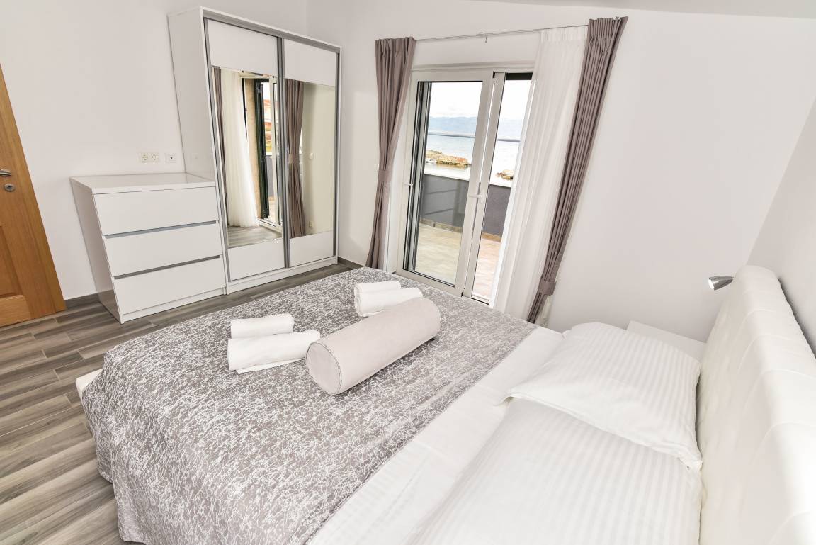 Das steinerne Haus wurde in einem modernen Baustil direkt am Meer erbaut und bietet Platz für maximal 10 Personen. Es besitzt drei Balkone mit Blick auf das Meer und das Velebit Gebirge.