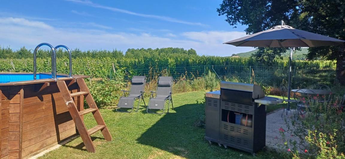 „Superlogement dans un cadre verdoyant et ombragé avec vue sur le vignoble !propriétaire sympathique et accueillant et aux bons soins pour ces locataires. Très beau séjour dans le lot !“