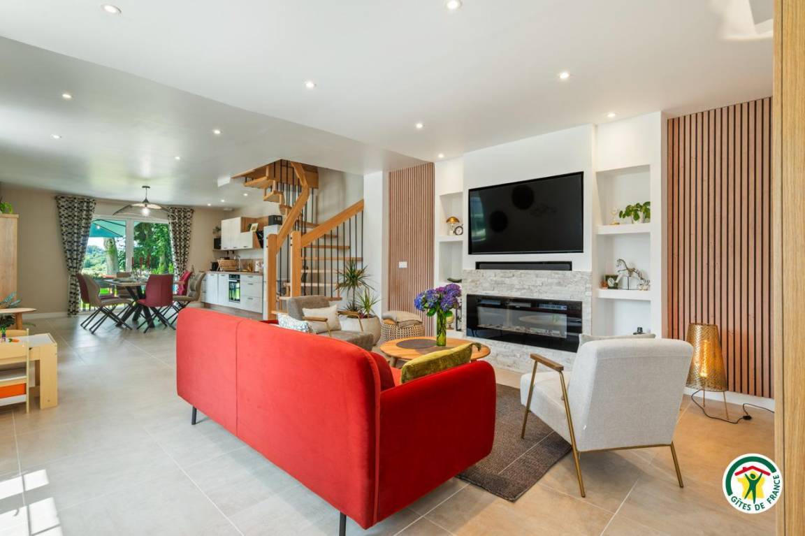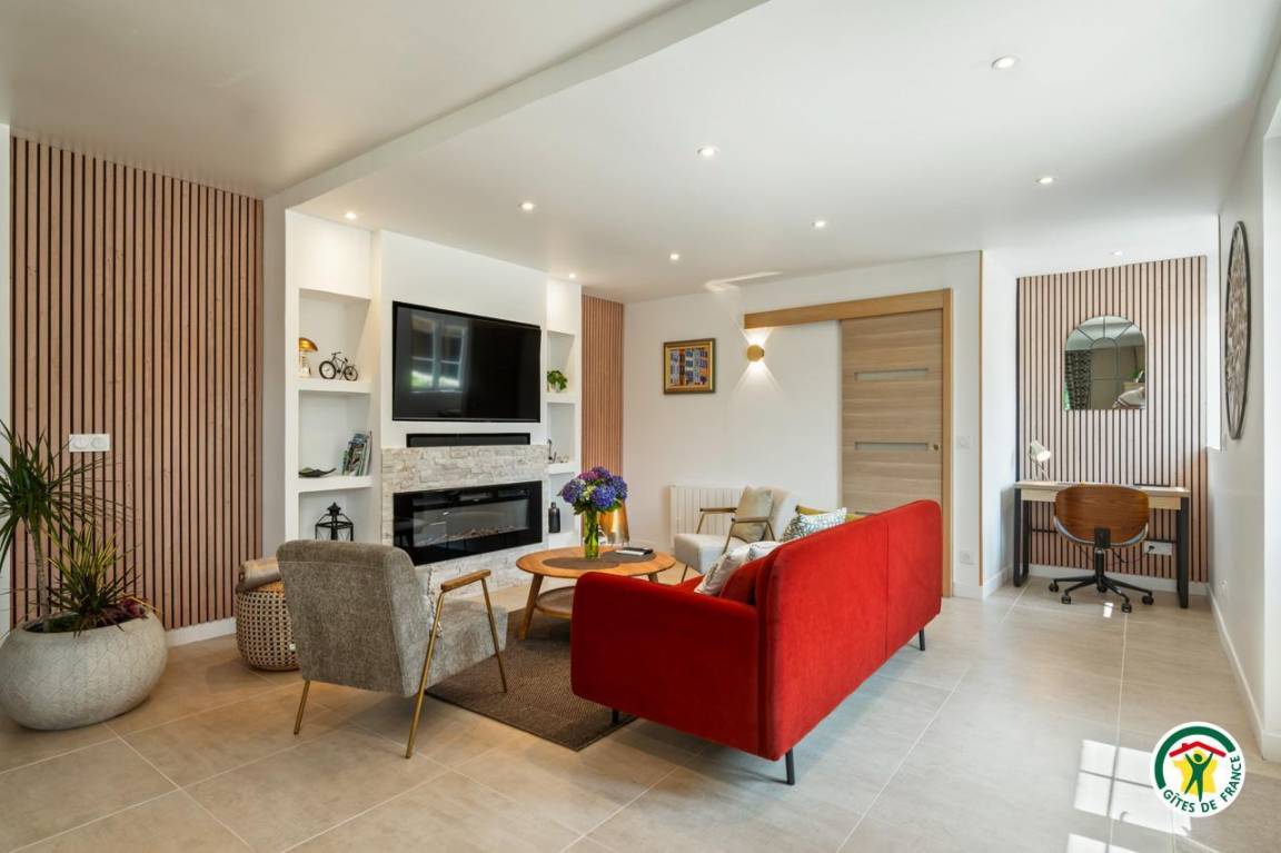 „Excellent gîte très récent avec une superbe décoration, excellente literie et le tout très bien équipé ! Un salon très cocooning avec cheminée artificielle, une grande télé avec barre de son, sapin et décoration de Noël. Un belle semaine du nouvel an entre amis, et un grand merci à Mme Aubry pour son accueil très sympa, sa bienveillance et son lots de gourmandises de la région à notre arrivée.“
