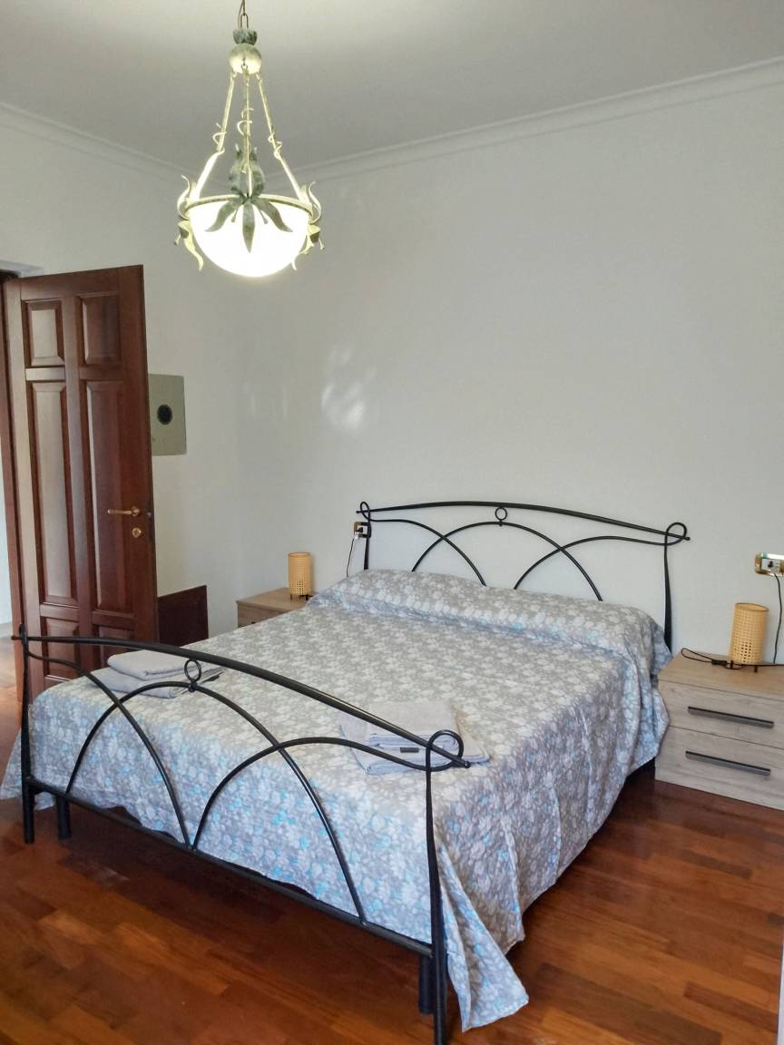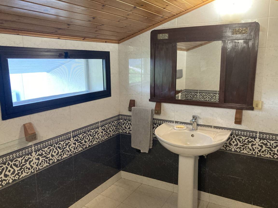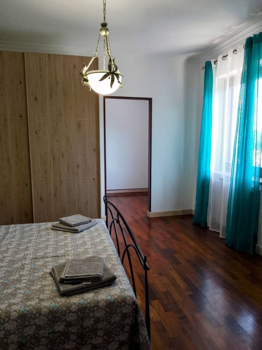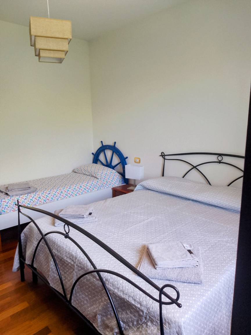 Schlafzimmer mit Bad 1 (20 m²): Doppelbett (Breite: 180m, Länge: 190m), Einzelbett (Breite: 80m, Länge: 190m), WiFi Internet, Klimaanlage, Fliegengitter, Schreibtisch, Waschbecken, WC, Bidet, Fön, Ausgang auf den Balkon.