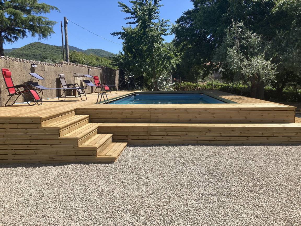 Garten (2500 m²): Schwimmbad (privat, Breite: 5m, Länge: 10m, Tiefe: 140m, Außen), Dusche, Grill, Außenbereich für das Essen im Freien, Esstisch, Gartenmöbel, Sonnenliege, eingezäunt, umzäuntes Grundstück.
