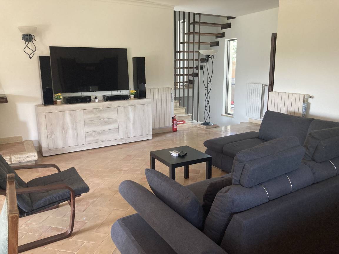 Wohnzimmer (36 m²): Sofa (Personen: 4), Sessel, Holzofen, Esstisch (Personen: 6), Sofa bed (Breite: 90m, Länge: 1.9m), WiFi Internet, Klimaanlage, Satelliten-TV, TV, Fliegengitter, Stereoanlage, Rauchmelder, CO2 Detektor, Ausgang auf die Terrasse, Ausgang auf die Veranda.