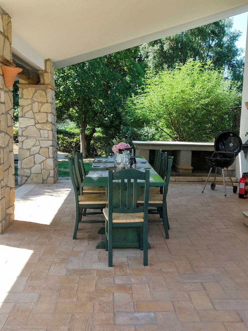 Küche (26 m²): gut ausgestattete Küche, Esstisch, Kühlschrank, Tiefkühler, Mikrowelle, Herd, Ofen, Toaster, Italienische Kaffeemaschine, Fliegengitter, Rauchmelder, CO2 Detektor, Ausgang auf den Garten, Ausgang auf den Patio, Ausgang auf die Veranda.